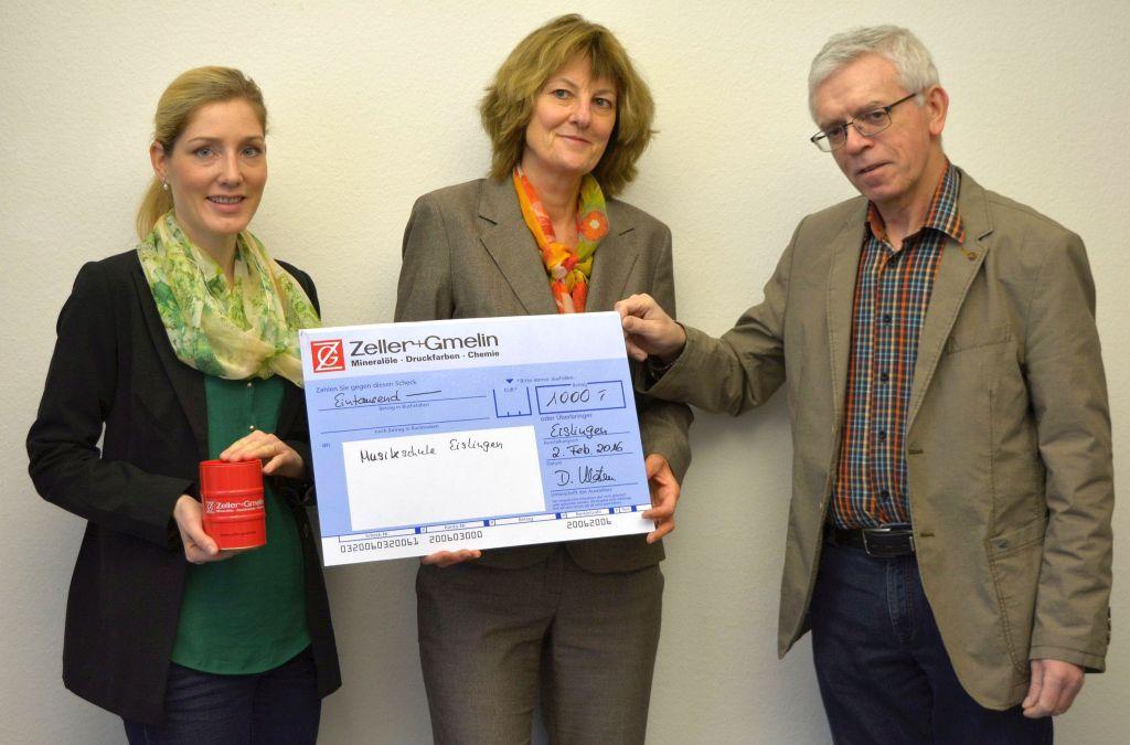 Die Musikschule erhielt von der Firma Zeller+Gmelin eine finanzielle Förderung von insgesamt 1200 €. Das Geld kommt einem Kooperationsprojekt mit der Silcherschule zu Gute,