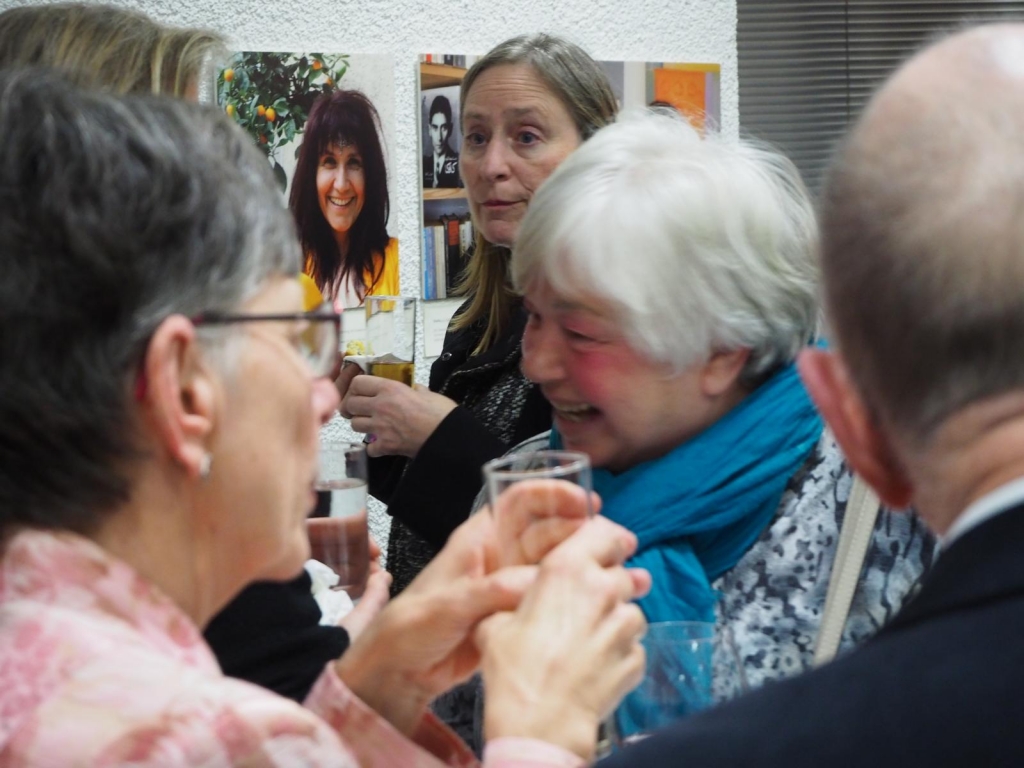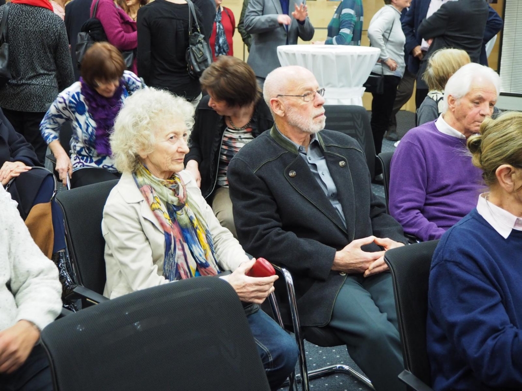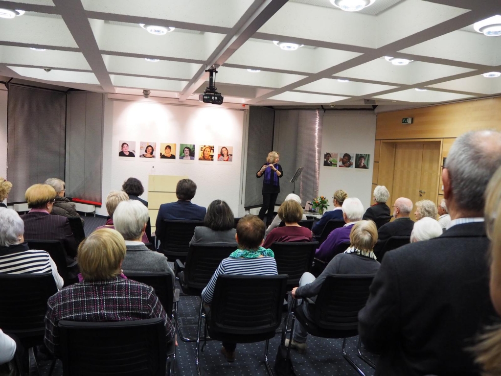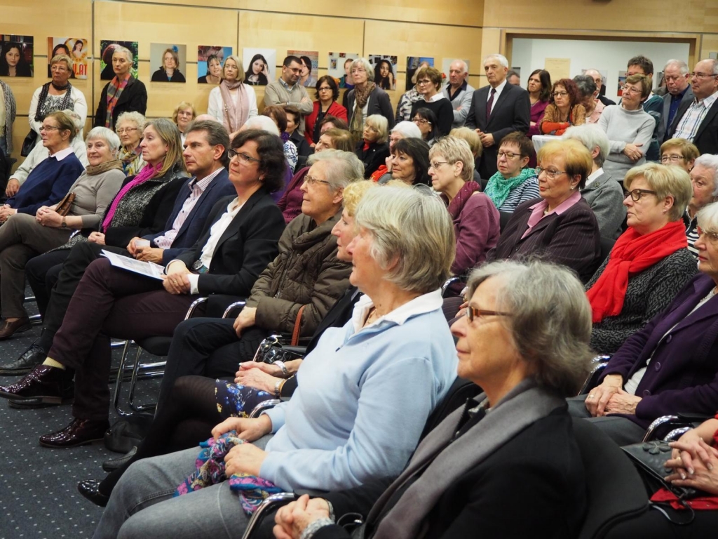 Die Vernissage zur Ausstellung „Die Hälfte des Himmels - 99 Frauen und Du“ in der Kreissparkasse Eislingen war mit über hundert Gästen ein voller Erfolg. Das rührende Kreissparkassenteam sorgte perfekt für das leibliche Wohl der Besucher und Besucherinnen. Der Kuratorin Annette Schiffmann gelang in ihrer beeindruckenden Eröffnungsrede, den Gästen das Thema der Ausstellung „Gewalt gegen Frauen“ auf bewegende Weise näher zu bringen.