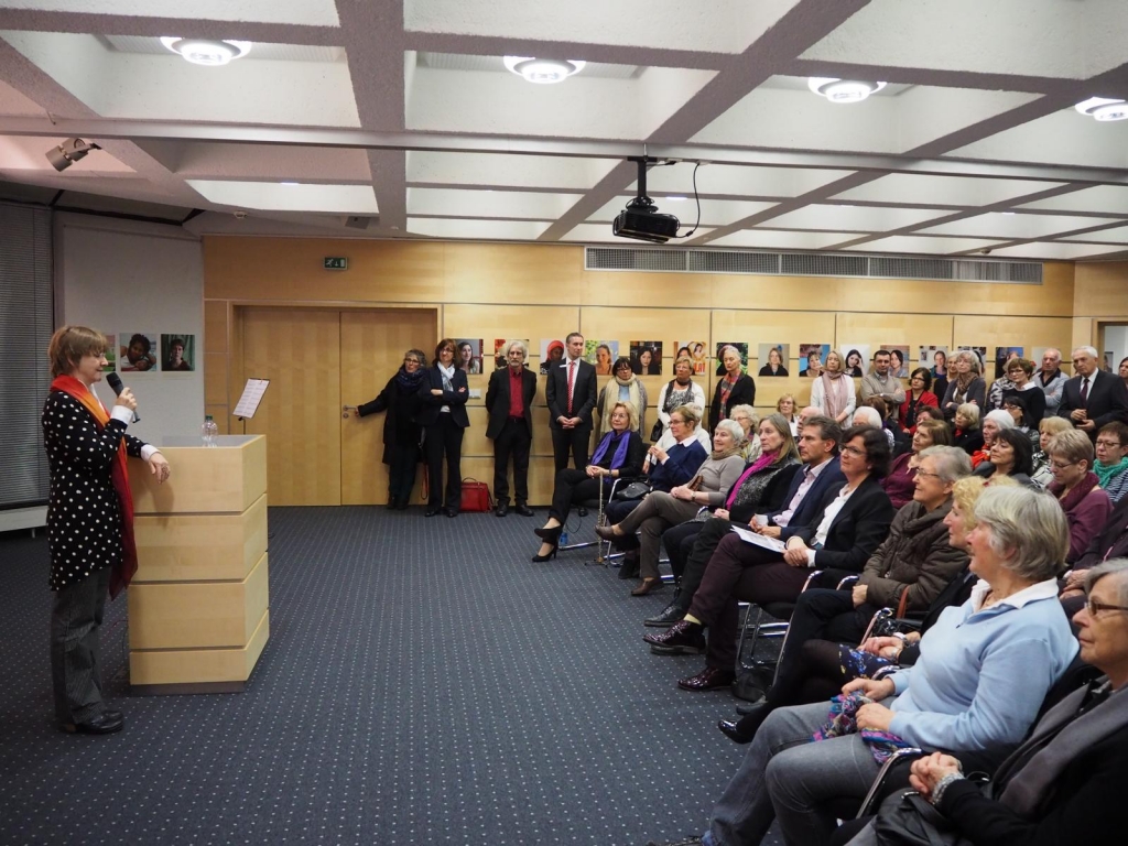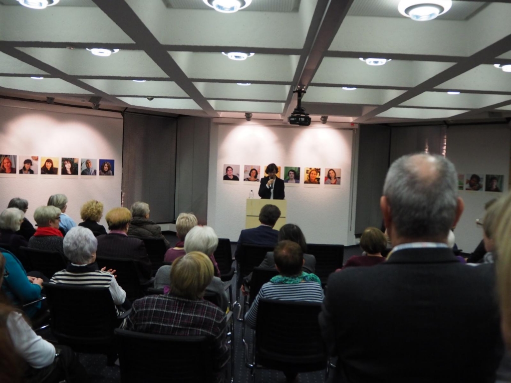 Zeuginnen sind die 99 Frauen, deren Portraits man in der Ausstellung anschauen kann und deren Geschichte man in Interviews auf Audioguides erfahren kann.