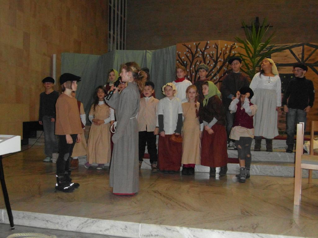 Liebevoll gebastelte Kulissen und passende Kostüme entführten die Zuschauer in das Turin vor rund 200 Jahren. Dort lebte Don Bosco, dessen Leben und Wirken in sieben Stationen gezeigt wurde. Er engagierte sich besonders für benachteiligte Kinder und Straßenkinder. Mit Bravour meisterte der kleine, aber feine Chor auswendig die schwungvollen, textlich anspruchsvollen Lieder. Auch die Sprecher und Solisten glänzten bei ihren Auftritten. Dieses Musical war ein ganz besonderes Highlight mit dem die Silcherschule bereits zum 10. Mal Pater Boekholt in Benediktbeuern unterstützt.