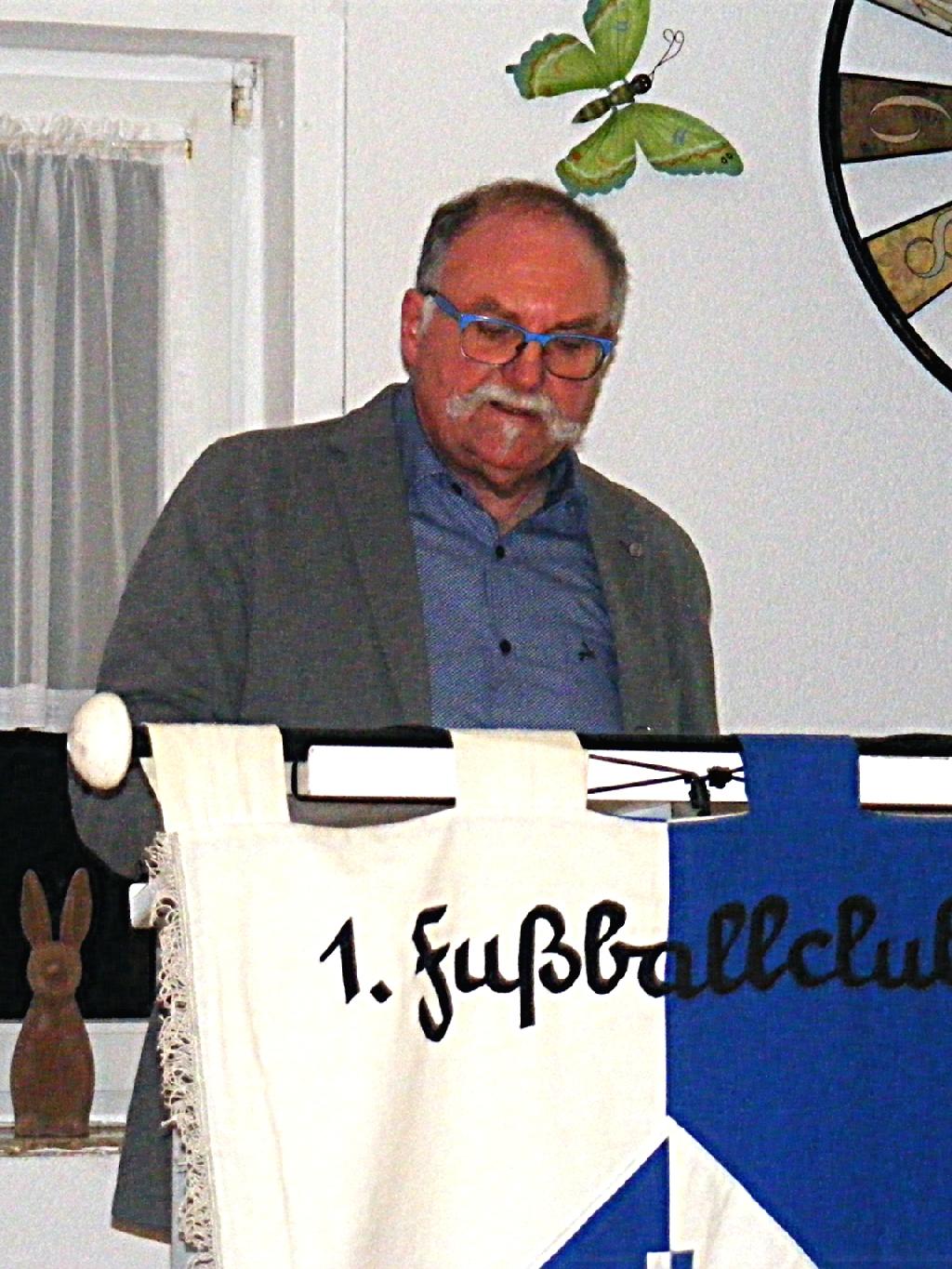 Nach dem Totengedenken für das im vergangenen Jahr verstorbene Ehrenmitglied Werner „Sepp“ Haag, ging der FC-Präsident auf das abgelaufene Geschäftsjahr ein.