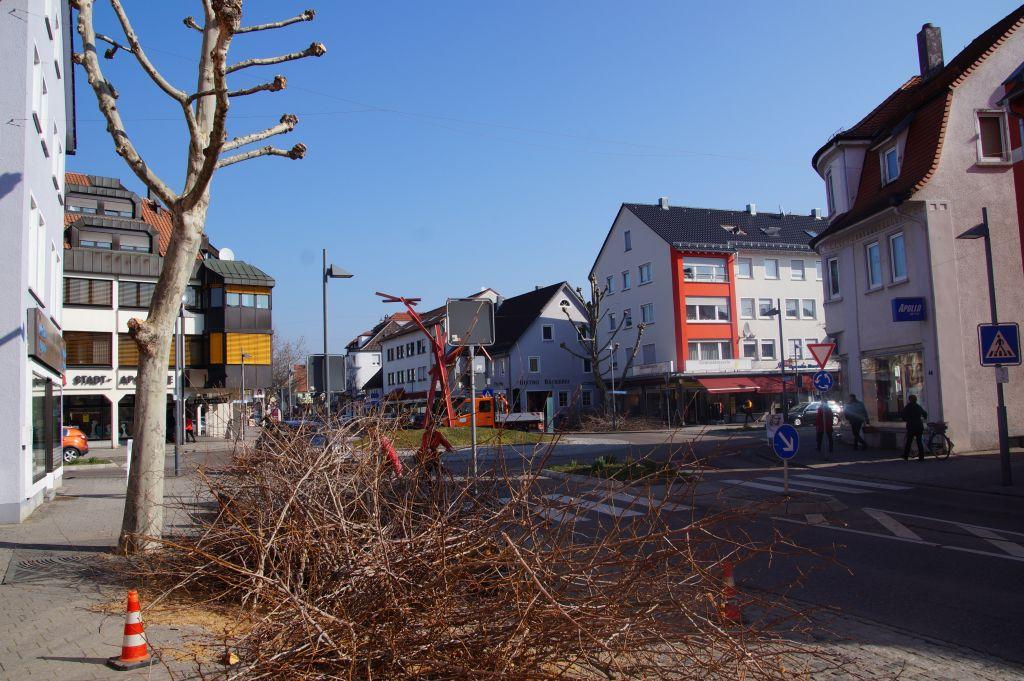 Damit die Platanen rund um den Freimannkreisel weiter schön in Form bleiben, werden diese einmal im Jahr gestutzt. Erstaunlich wie schnell hier dann wieder neues Grün hervorkommt und bald ein schattenspendendes Blätterdach sich bildet. |