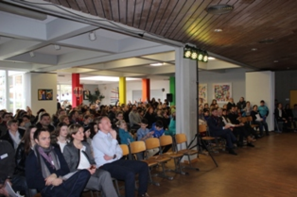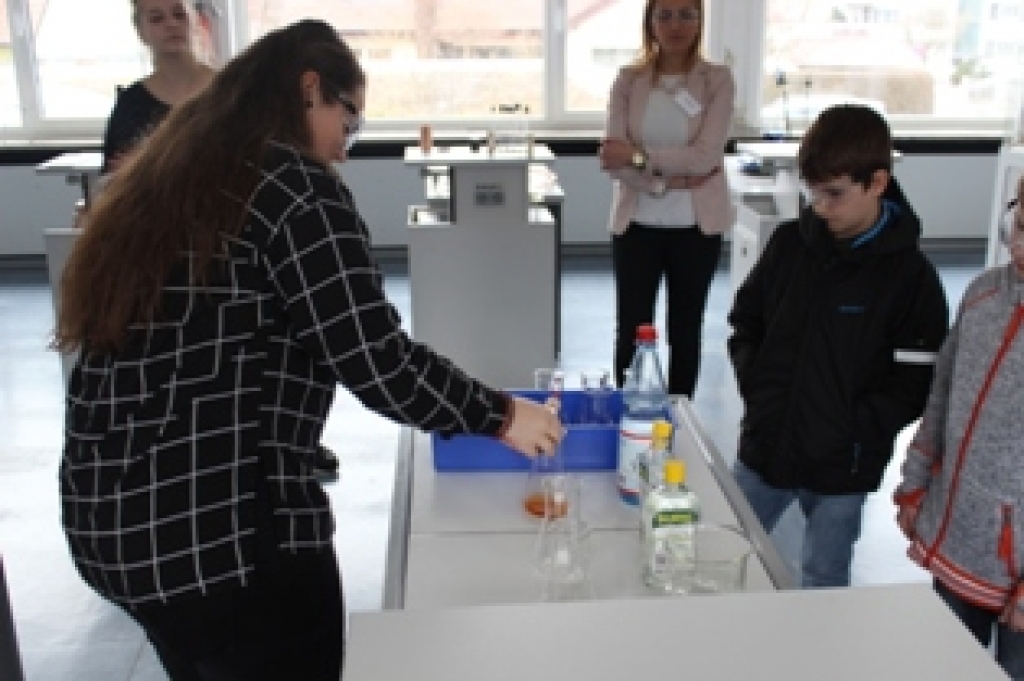 Rund 250 Besucher füllten am Dienstag der vergangenen Woche die Räume der Dr.-Engel-Realschule. Beim Grundschulnachmittag konnten sich die Schüler der 4. Klassen einen Einblick in das Schulleben der Eislinger Realschule verschaffen. Begrüßt wurden die Besucher von Schülerinnen und Schüler der Klassen 8a und 8b, die auch für die Organisation und Durchführung des Nachmittags unter der Leitung von Herrn Eckle und Herrn Schwarzenbolz verantwortlich waren. Nach einer Rede des Schulleiters Herrn Andreas Schlaiss und zwei musikalischen Beiträgen der Klassen 7b und 5d unter der Leitung von Frau Smeeth und Frau Adam ging es in insgesamt 11 Fachräume der Schule. Hier konnten die Grundschüler Blicke in den Offenen Unterricht erhaschen und Erstaunliches bei Experimenten erfahren. Bei Kaffee und Kuchen wurden bei netter Atmosphäre die ersten Eindrücke ausgetauscht. |