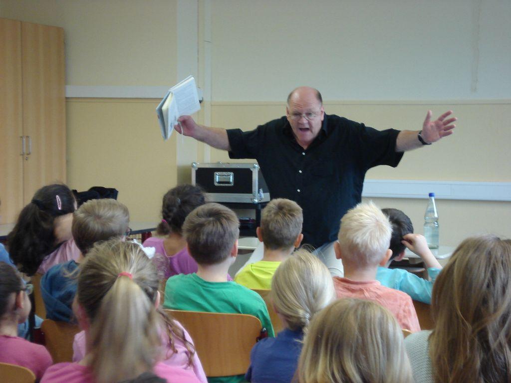 Pünktlich zu Beginn der Fußball- Europameisterschaft lud die Stadtbücherei Eislingen den Kinderbuchautor Ulli Schubert, der sich auf einer Lesungsreise in Süddeutschland befindet, in die Schillerschule ein.