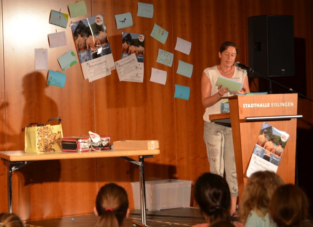 „Wie viel tausend Lesekilometer ihr diesen Sommer angesammelt habt, wage ich gar nicht abzuschätzen. Aber eines kann ich euch sagen: Auf eure Leistung könnt ihr alle mächtig stolz sein!“ Mit diesen lobenden Worten begrüßte Oberbürgermeister Klaus Heininger die weit über 100 Jungen und Mädchen im Alter von 8 bis 14 Jahren, die während der Sommerferien im Leseclub über 600 Bücher ausgeliehen und gelesen haben. Neben Urkunden bekamen die eifrigen Bücherwürmer auch tolle Preise überreicht. Vor allem Büchergutscheine, die in diesem Jahr wieder vom Stauferwerk gestiftet wurden, waren heiß begehrte Preise. Einen unterhaltsamen Nachmittag bot der Düsseldorfer Autor Joachim Günther mit seiner mitgebrachten „Leseshow“. Tolle Preise und Urkunden war der Lohn für die fleißigsten Bücherwürmer der Leseaktion |