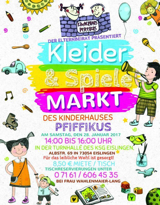 Am Samstag, den 28. Januar findet um 14 Uhr der nächste Kinderkleider- und Spielemarkt des Kinderhauses Pfiffikus in der Turnhalle des KSG Eislingen statt, zudem alle interessierten Familien herzlich eingeladen sind.