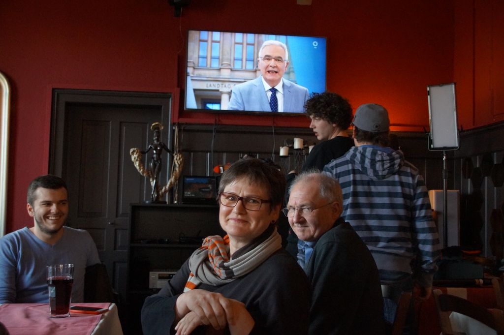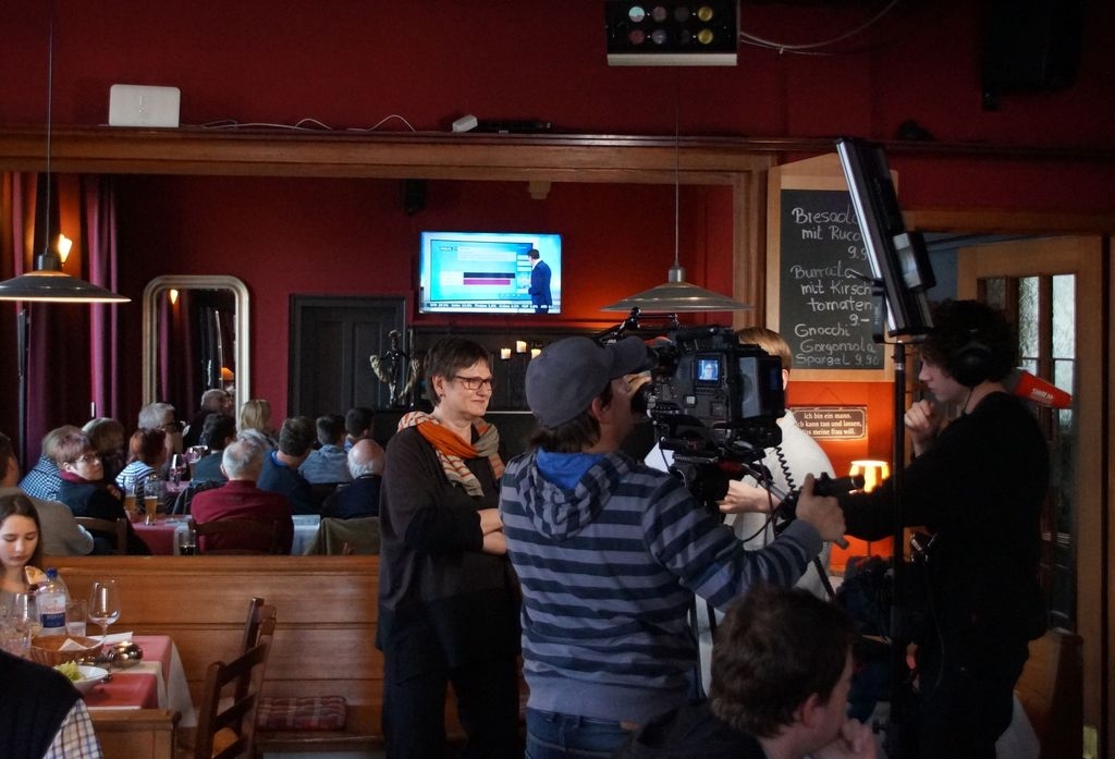 Leni Breymaier und zahlreiche SPD-Anhänger verfolgten im Adler in Eislingen die Hochrechnung der Landtagswahl im Saarland. Eislingens Musikpub und Restaurant wurde somit die Kulisse für die Wahlanalyse der SPD Landesvorsitzenden. Hier ein paar Impressionen aus dem Ader vom Wahlsonntag. Bild: Mediathek SWR |