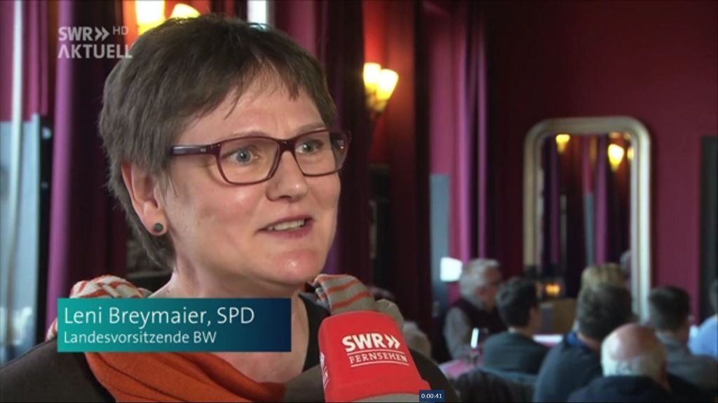 Wahlanalyse der Saarlandwahl aus dem Adler im SWR-Fernsehen Leni Breymaier wird in Eislingen interviewt 26.3.2017 - Hans-Ulrich Weidmann