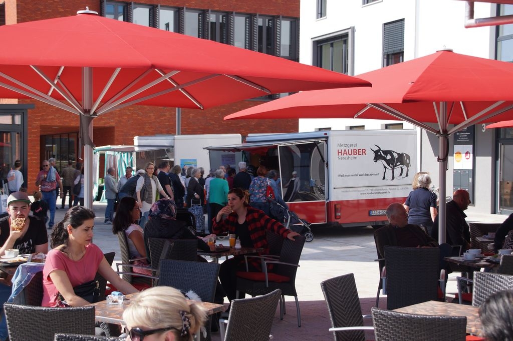 Besser kann der Start am neuen Standort nicht gelingen. Bei frühsommerlichen Temperaturen und Sonnenschein präsentierte sich der Eislinger Wochenmarkt am neuen Standort im besten Licht. Und nicht nur bei Oberbürgermeister Heininger, sondern bei allen Verantwortlichen konnte man die Erleichterung feststellen, dass der neue Standort von den Bürgerinnnen und Bürgern angenommen wird. |