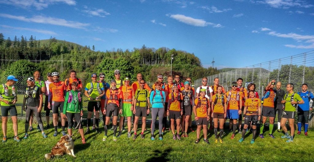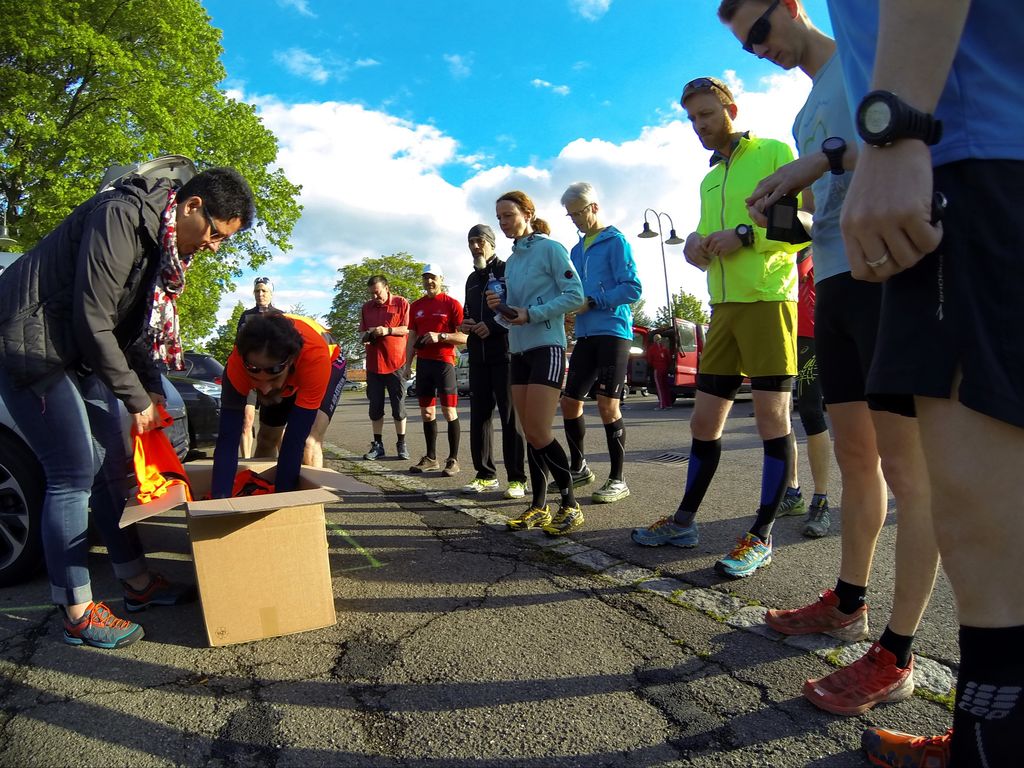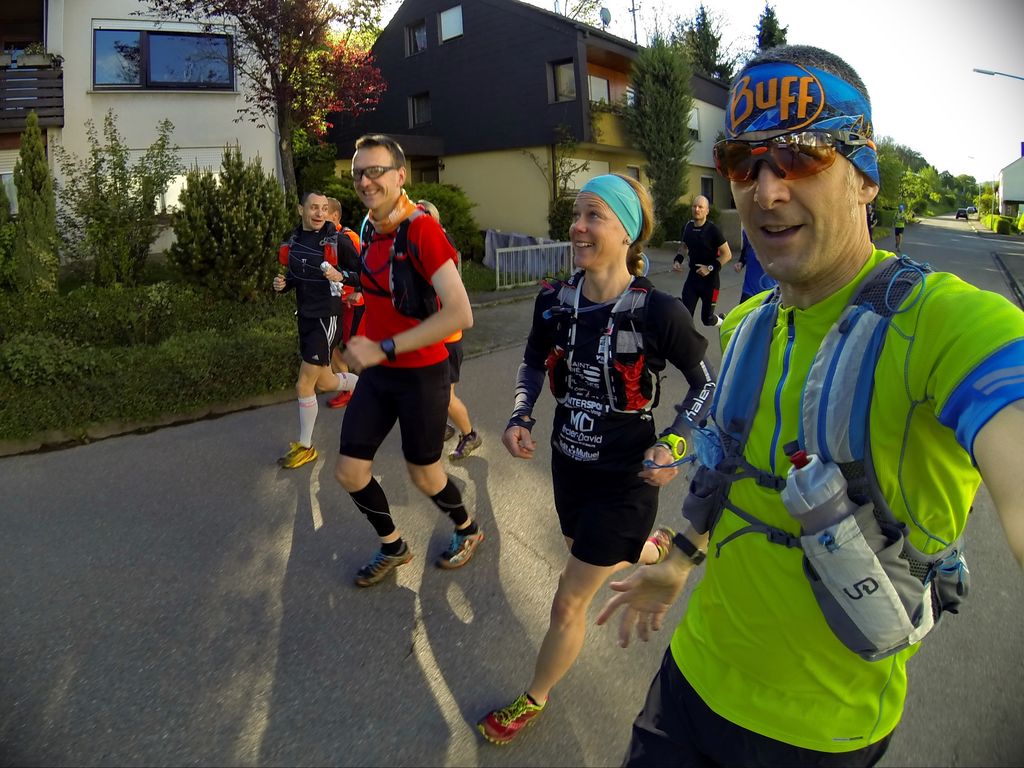 Mit eigens entworfenen Shirts ist ein Großteil der 35 am Samstagmorgen gestartet. Die Teilnehmer organisieren ihre privaten Treffs seit rund fünf Jahren über das Internet. Auslöser war der Albmarathon in Schwäbisch Gmünd, ein jährlich im Oktober stattfindender Ultralauf über 50 Kilometer. „Zum ersten Treff kamen vier Leute, um gemeinsam eine längere Strecke zu trainieren“, sagt Frank Weller. Seither ist die Gruppe gewachsen und sie laufen als Albmarathon Ultra Lauf Treff (AMULT) in unregelmäßigen Abständen in ganz Baden-Württemberg Strecken von 30 bis 60 Kilometern.