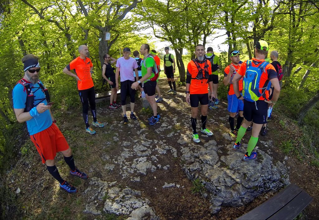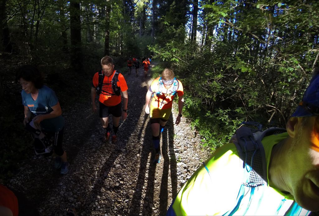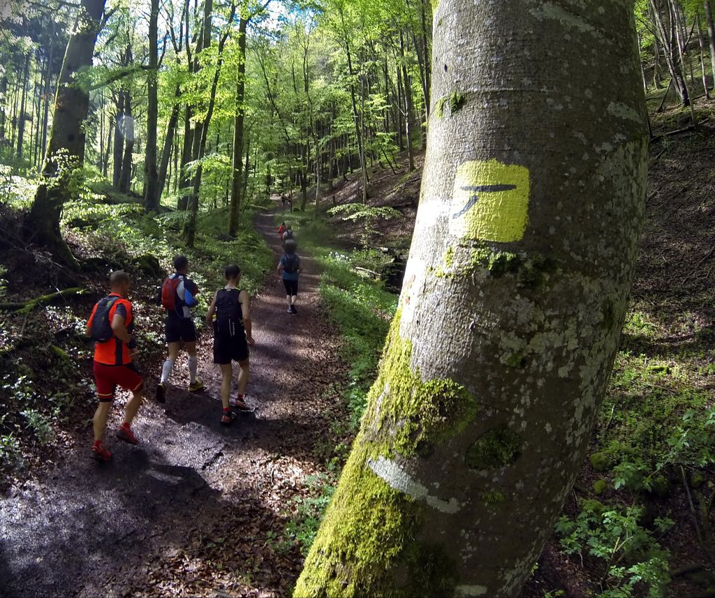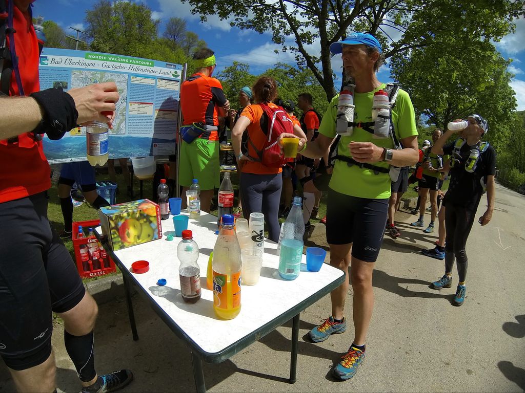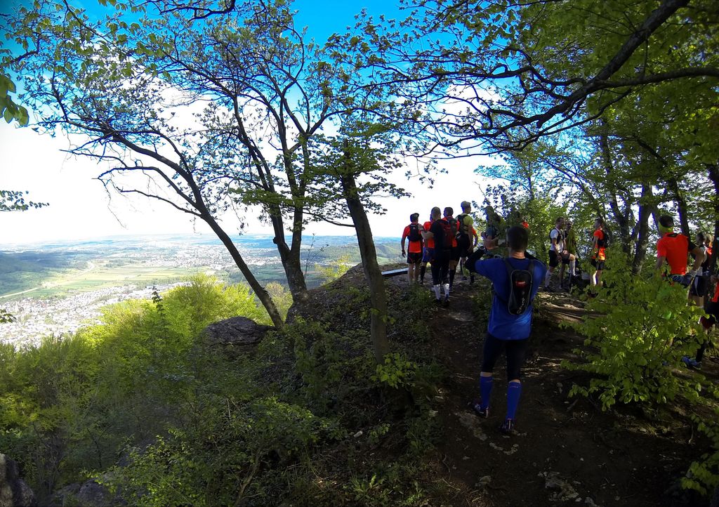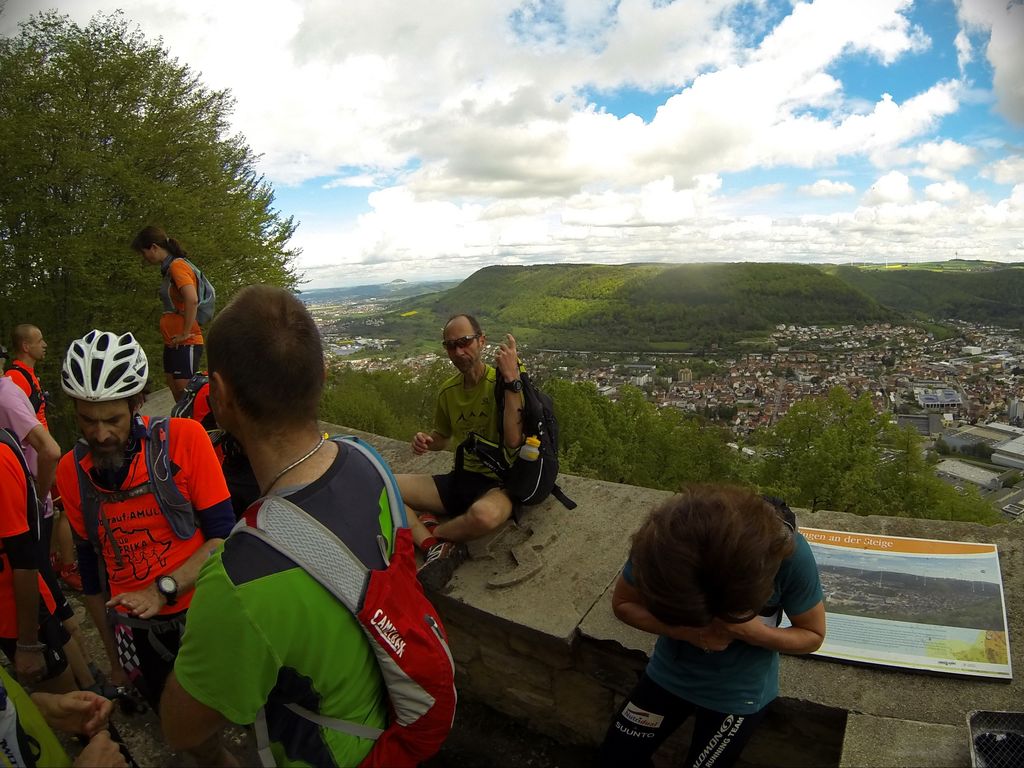 Die Runde am Samstag war für alle ein Genuss mit vielen tollen landschaftlichen Eindrücken. Vom Hohenstein über Eybach durch das herrlichen Felsental zum Helfenstein. Nach einer kleinen Verschnaufpause hinunter nach Geislingen und hoch zum Ostlandkreuz. Den Traufweg entlang bis zum Kahlenstein und dann Pause an der von Teilnehmer Stephan Bühler aus Bezgenriet bezeichneten „Gourmet-Verpflegungsstelle“ in Bad Überkingen. Kaum einer will weiter. Erst ein leichtes Donnergrollen schreckt die Läufer auf, immerhin liegen noch 15 Kilometer und der Aufstieg zur Hausener Wand vor ihnen. Über den Burren folgt noch der Schlenker um den Fränkel, der den herrlichen Blick auf die drei Kaiserberge frei gibt.
