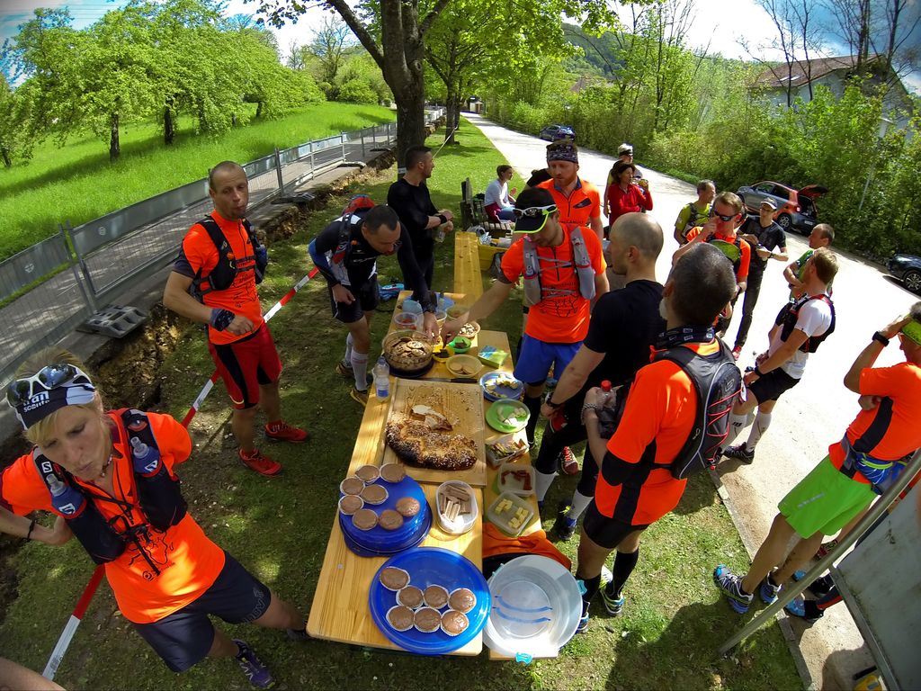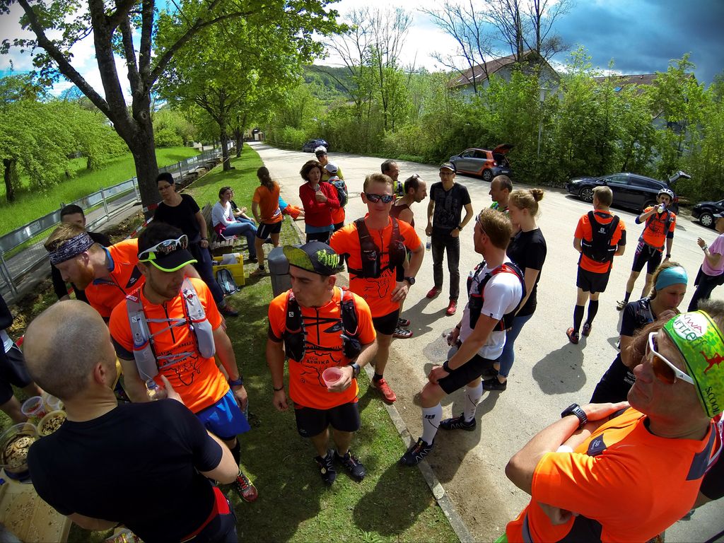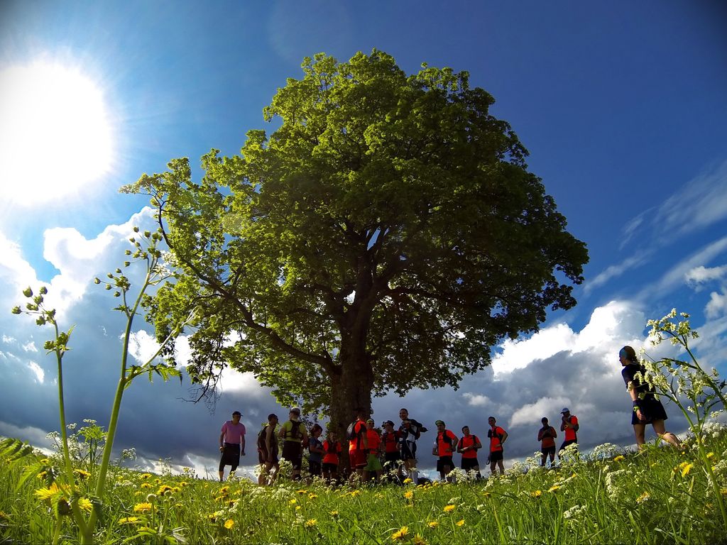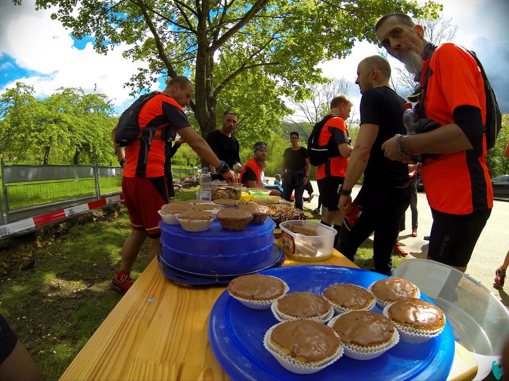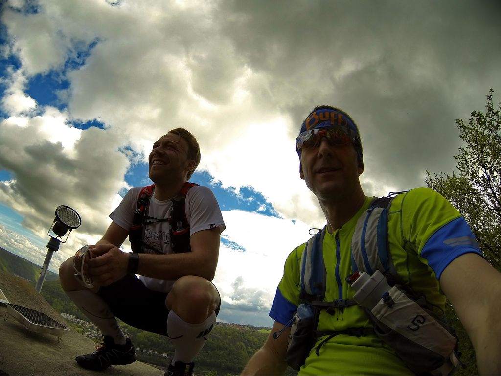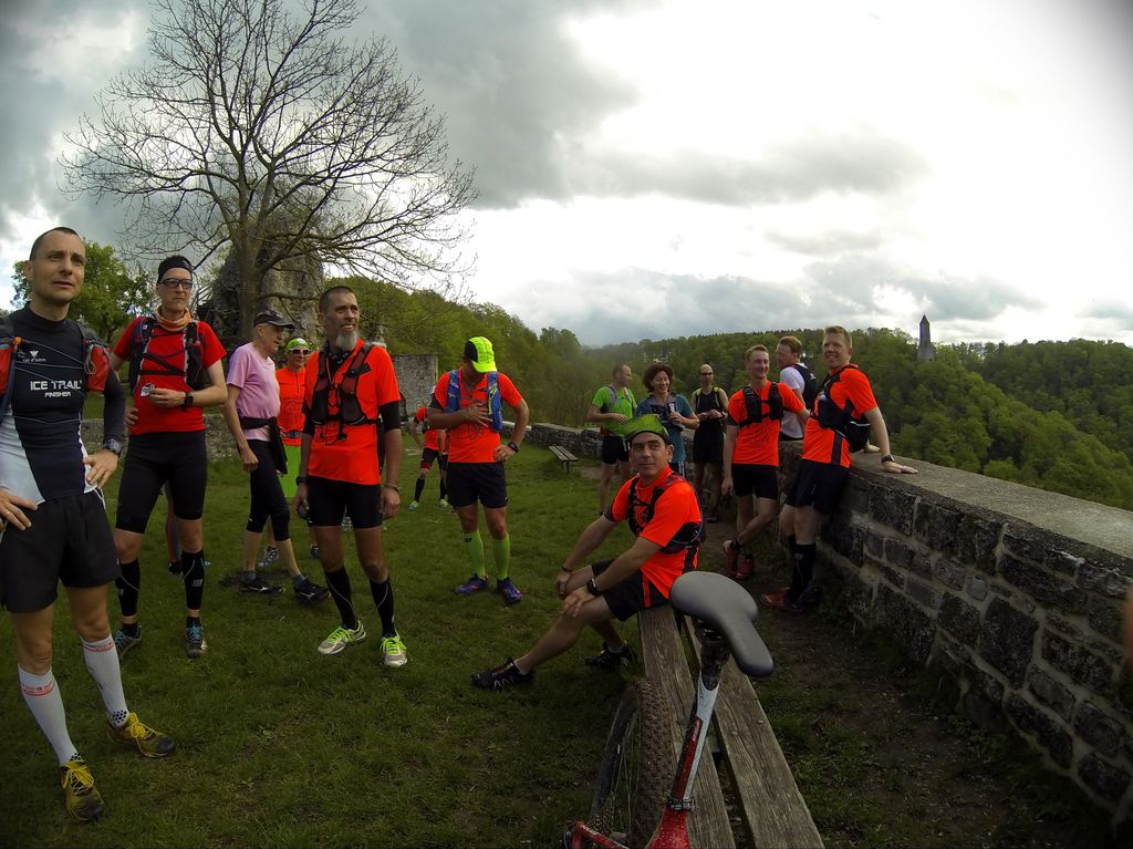 Die Runde am Samstag war für alle ein Genuss mit vielen tollen landschaftlichen Eindrücken. Vom Hohenstein über Eybach durch das herrlichen Felsental zum Helfenstein. Nach einer kleinen Verschnaufpause hinunter nach Geislingen und hoch zum Ostlandkreuz. Den Traufweg entlang bis zum Kahlenstein und dann Pause an der von Teilnehmer Stephan Bühler aus Bezgenriet bezeichneten „Gourmet-Verpflegungsstelle“ in Bad Überkingen. Kaum einer will weiter. Erst ein leichtes Donnergrollen schreckt die Läufer auf, immerhin liegen noch 15 Kilometer und der Aufstieg zur Hausener Wand vor ihnen. Über den Burren folgt noch der Schlenker um den Fränkel, der den herrlichen Blick auf die drei Kaiserberge frei gibt.