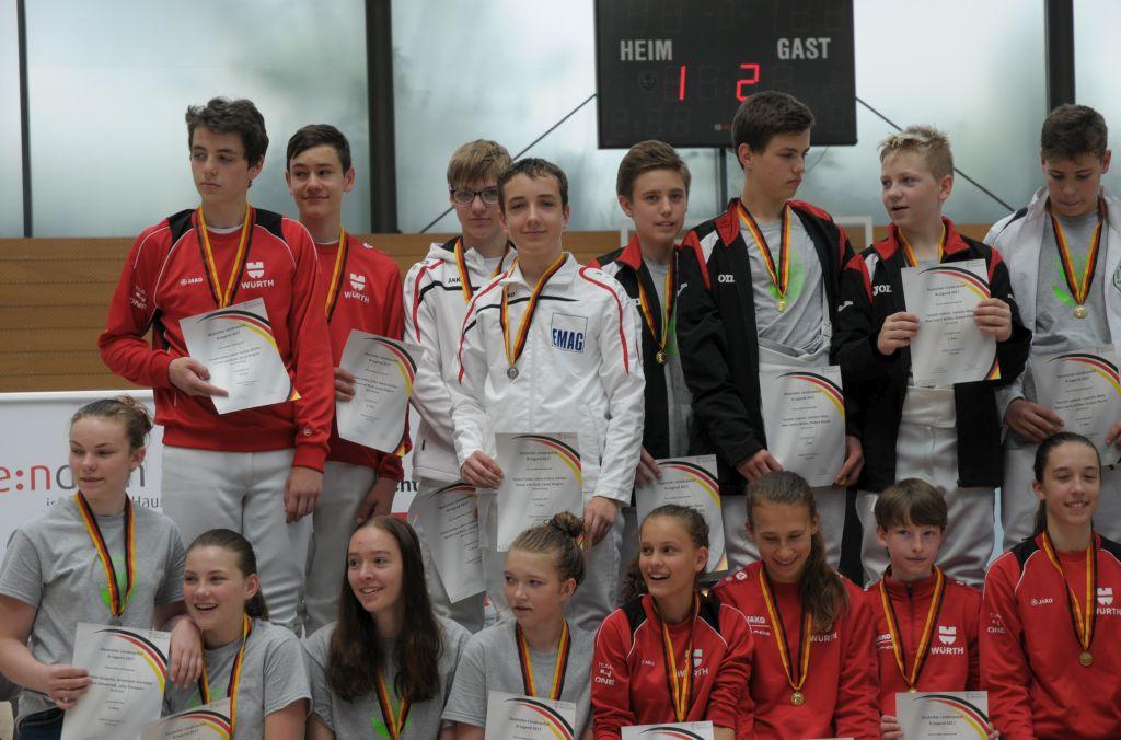 Neben den Jungs konnte auch Finja Schmid in der Mannschaft mitmischen. Mit Württemberg 2 holte sie sich den vierten Platz. Mit starken Gefechten in der Vorrunde qualifizierten sie sich für die letzten 8. Hier schlugen sie zuerst Nordrhein 2, bevor sie sich gegen ihre Landesfreundinnen von Württemberg 1 knapp geschlagen geben mussten. Im Gefecht um Platz 3 war dann Hessen leider ein wenig zu stark. Mit Platz 4 dennoch ein gutes Ergebnis für die jungen Mädels.