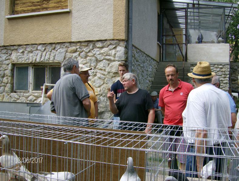 Bei sommerlichen Temperaturen starteten 9 Stauferländer zum Züchterbesuch nach Villany/Ungarn. Besonders die hintere Rücksitzbank kam sehr ins Schwitzen und die Klimaanlage des Busses an ihre Grenzen. Im Heimatort unseres Mitglieds Tibor Szanto, nur eine Stunde von Villany entfernt, aßen wir zu Mittag (1. Gulasch). Danach fuhren wir gemütlich weiter zu Istvan Eibel und seiner Frau, die uns aufs Herzlichste begrüßten (2. Gulasch),unsere anderen Züchterfreunde aus Vokany und Villany kamen ebenso zur Begrüßung. Istvan Eibels beeindruckende Kingtaubenzucht wurde ausgiebig erkundet. Istvans Nachbar Pisto zeigte uns seine Tauben, zum Jungzüchter Dominik Chrobak fuhren wir anschließend, dort kamen auch die Zwerghuhnzüchter auf ihre Kosten. Den Abend ließen wir auf der Terrasse unserer Unterkunft ausklingen.