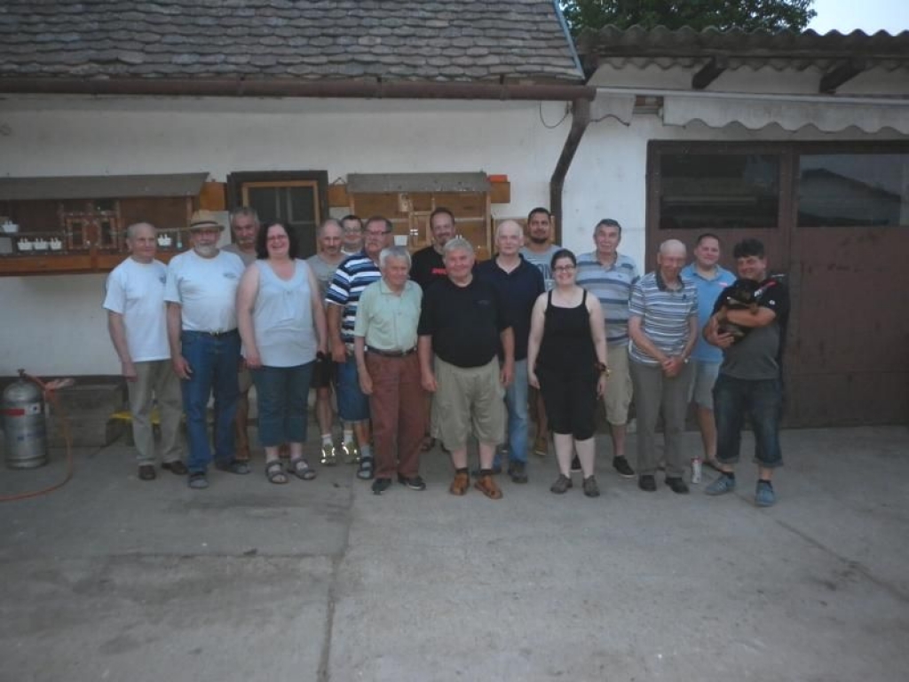 Unser nächstes Ziel führte uns zum Hans Mayer Bonyhards. Er hatte auf die Schnelle eine Käfigreihe aufgestellt und sein verschiedenen Taubenrassen präsentiert. Zu sehen waren in unterschiedlichsten Farben Modena, Kingtauben, Texaner, Ungarische Brieftauben und Coburger Lerchen. Unser Imker Josef Kolb erfreute sich an den Bienenstöcken im Garten und nahm sogar eine Bienenkönigin mit. Eine Straße weiter von Tibors Elternhaus erwartete uns eine weiter Kingtaubenzucht mit sehr vielversprechenden Tieren, wie der Sonderrichter für King Istvan Eibel feststellte. Auf dem Rückweg nach Villany besuchten wir einen weiteren Texanerzüchter, der mit seiner Familie einen abseits gelegenen Hof mit Pensionspferdehaltung und kleiner Selbstversorgung bewirtschaftet. Abends waren wir bei Zuchtfreund Joni eingeladen (kein Gulasch!). Ein paar absolvierten bei hellstem Mondschein noch einen Verdauungsspaziergang zu einer nahegelegenen Anhöhe bei unserer Unterkunft.