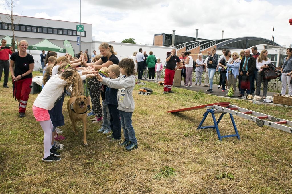 „Unsere Hundeteams sind speziell ausgebildet um in großen Waldgebieten nach Vermissten, demenzkranken Menschen, Suizidgefährdeten oder Kindern zu suchen“ erklärt Tomaszewski. Auch im Trümmereinsatz können die Rettungshunde dank ihrer guten Nase Verschüttete auch noch unter mehreren Metern hohen Trümmerhaufen ausfindig machen. Was Sie dazu können müssen zeigten die Hundeteams auf interessante Weise. „Über Leitern klettern, springen und suchen gehört neben dem Gehorsam zu den Grundübungen bei der Ausbildung der Hunde“ so Tomaszewski. Die Zuschauer, vor allem die Kinder waren begeistert.