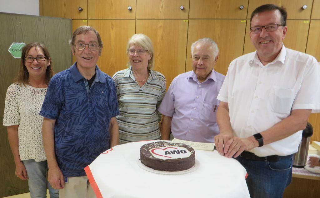 Für eine gelungene Überraschung sorgte der Kreisvorsitzende der AWO, Uli Weidmann, der eine eigens von Konditormeister Damiano gefertigte Umzugs-Sacher-Torte mitbrachte, die wie Harald Kraus ankündigte, „mit großem Wohlwollen niedergekämpft wurde“.