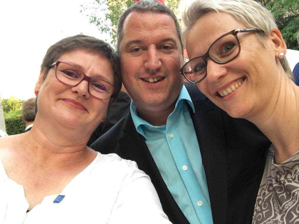 Nicht schlecht staunte eine Eislingerin, die SPD-Landesvorsitzende Leni Breymaier, als sie in Berlin bei der Stallwächterparty in der baden-württembergischen Landesvertretung bekannte Gesichter aus dem Kreis Göppingen traf. Herr Heger von der gleichnamigen Metzgerei war mit seiner Frau angereist. Sie vertraten beim Fest die Fleischerinnung des Landes. |