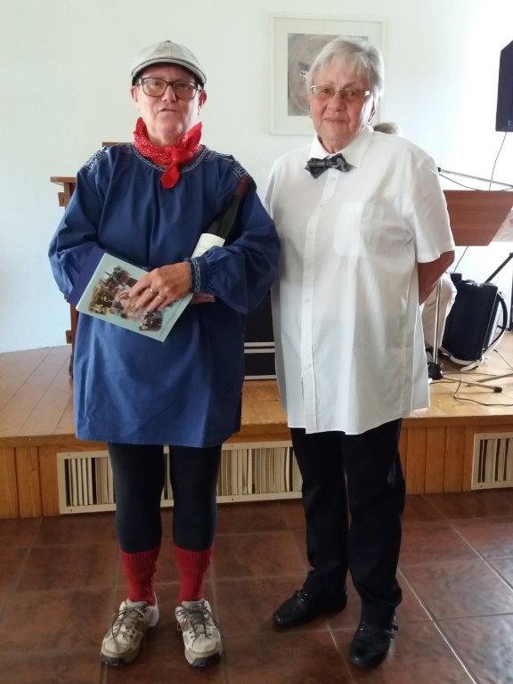 Während der anschließenden Stimmungsrunde mit Gerhard Voith gab es Kaffee, Gebäck und angeregte Unterhaltungen. Ein Geburtstagslied machte den Anfang der vielen Wunschlieder zum Mitsingen der Gäste. Uschi Haiplik und Elli Huber spielten, in bewährter Manier, unter viel Gelächter der Zuschauer einen Sketch über „Reig´schmeckte“. Jetzt wurden die von Achim Fröhner perfekt gegrillten „Roten“ serviert. Eine schwungvolle Schlussrunde beendete das Sommerfest. Ein großer Dank an den Musiker, den Grillmeister und das Bewirtungsteam! Nach der Sommerpause findet am 7. September der Halbtagsausflug zum Kloster Roggenburg statt (man kann sich noch anmelden) und am 5. Oktober kommt die Autorin Ingrid Geiger mit schwäbischen Ungereimtheiten unter der Überschrift „Z´viel isch au nix“ . A.E.
