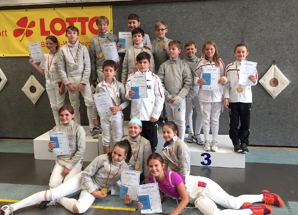Bei den Schülern konnten 3 Fechter des Stützpunkts die Goldmedaille holen. Lars Geiger, Benedikt Haym und Dana Schempp konnten alle in ihrem Jahrgang triumphieren. Zudem kamen mit Tiberius Thumm, Anastasija Hirschfeld und Julia Scharry 3 Silbermedaillen zur Sammlung hinzu. Um die Sammlung zu komplettieren sammelten Loris Kurz, Philip Kuhn, Luca Bauer und Anastasia Janz die Bronzemedaillen ein. Das Ergebnis vervollständigten Pascal Schönholz, Lina Bauer und Vanja Kosmatin mit Platz 5. Jana Cizic und Louis Clauß kamen auf die siebten Plätze. Abschließend war Lea Treffkorn mit Platz 7 vertreten. Die 3 Mannschaften des Stützpunkts konnten auch super Leistungen zeigen und nahmen 2-mal Silber und 1-mal Gold aus Tauberbischofsheim mit nach Hause.