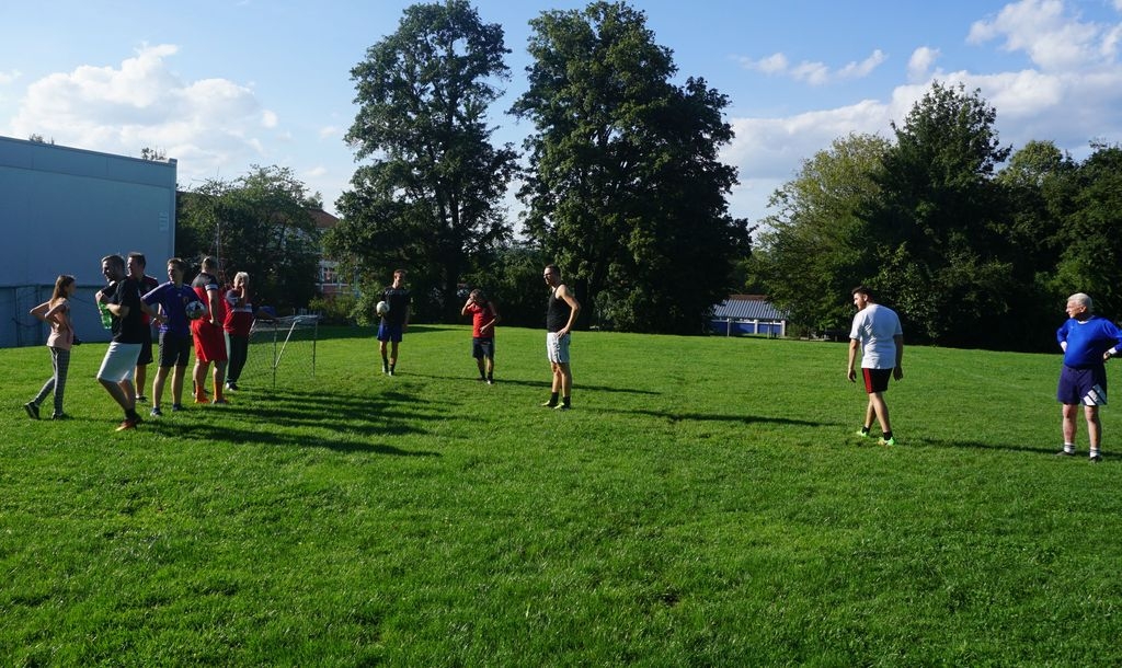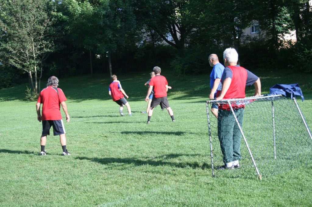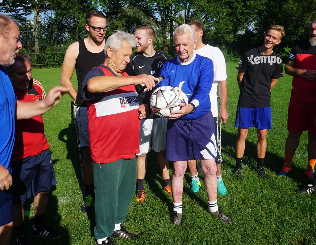 So ganz genau weiß keiner mehr, wann sich die Jungs des Evangelischen Jugendwerks Eislingen 1957 zum ersten mal zum Fußball spielen am TSG Waldheim verabredet haben. Zwar ging kurze Zeit später das erste offizielle Spiel gegen die katholische Jugend knapp verloren, doch das tat dem Sportgeist der jungen Gruppe keinen Abbruch. Sie wuchs stetig weiter und stellt so seit 60 Jahren eine feste Institution im Evangelischen Jugendwerk Eislingen dar. In den Jahren wechselte die Sportstätte vom TSG Waldheim über einen Platz am 1. FC Eislingen hin zur Dr. Engel Realschule. Dort wird auch heute noch freitagabends um jeden Ball „kameradschaftlich gefightet“. Bemerkenswert ist zudem, dass sich die Sportgruppe mittlerweile aus Mitspielern dreier Generationen zwischen 14 und 78 Jahren zusammensetzt. Dabei sind zwei der Gründungsmitglieder der Sportgruppe Horst Blattner und Peter Heck immer noch freitags als aktive Mitspieler und respektierte Gegner mit dabei. Taufe des neuen Balls |