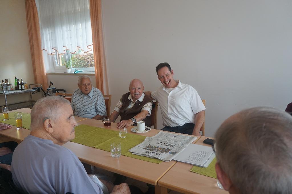 Herr Schulz liest auch interessante Artikel aus der Tageszeitung vor. Danach diskutiert die Männerrunde über aktuelle Themen und Geschehnisse aus der Region und aus dem Ausland.