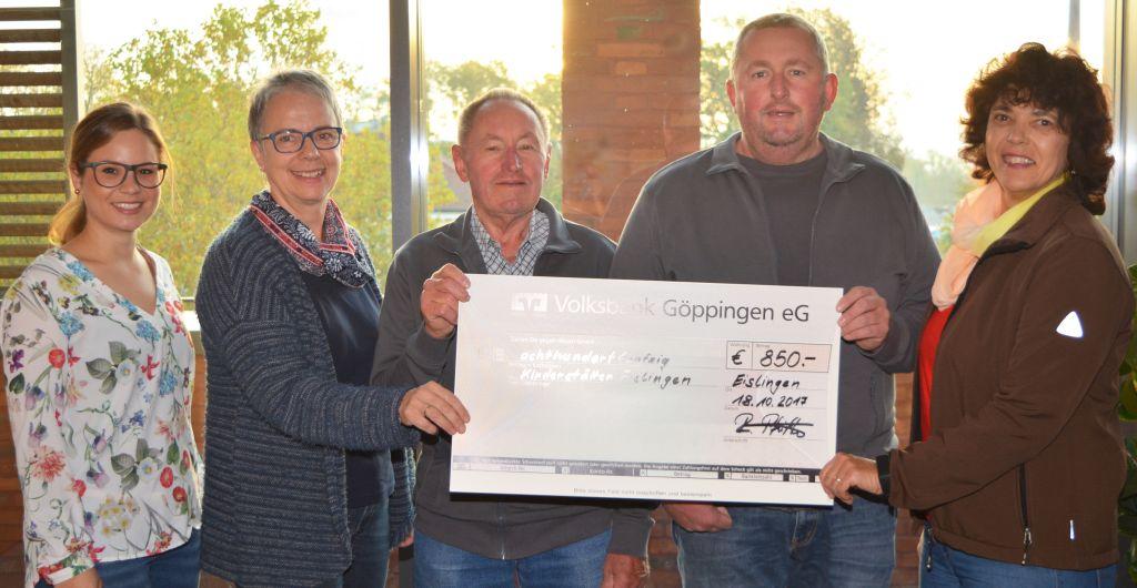 Stellvertretend für alle Eislinger Kindertagesstätten nahmen vor kurzem Claudia Thormann und Helmine Gärtner freudenstrahlend einen Spendenscheck in Höhe von 850 Euro entgegen. Jede der insgesamt