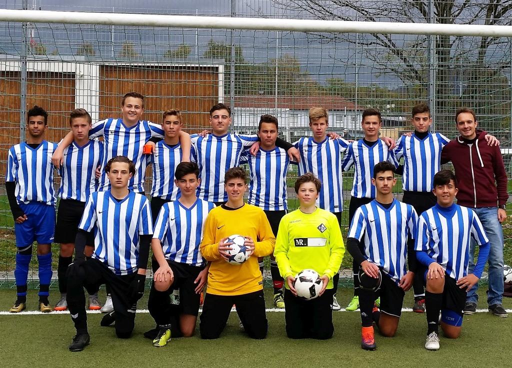 Stehend von links: Sevban Demir, Julian Burrogano, Luca Kaufmann, Flavio Schirinzi, Emre Sentürk, Tümay Arman, Niklas Rapp, Wladimir Bugrowski, Jamal Abou Mehri, Trainer Jochen Müller. Sitzend von links: Leonardo Bruno, Loris, Cicalone, Ali Abou Mehri, Justin Feyl, Loris Schirinzi, Claudio Nicolosi