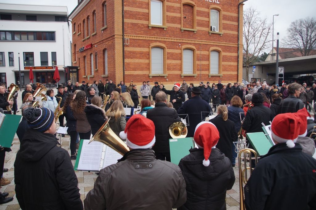 Stadtkapelle und Posaunenchor musizieren gemeinsam am Heiligen Abend O du Fröhliche gemeinsam mit den Besuchern angestimmt 25.12.2017 - Hans-Ulrich Weidmann