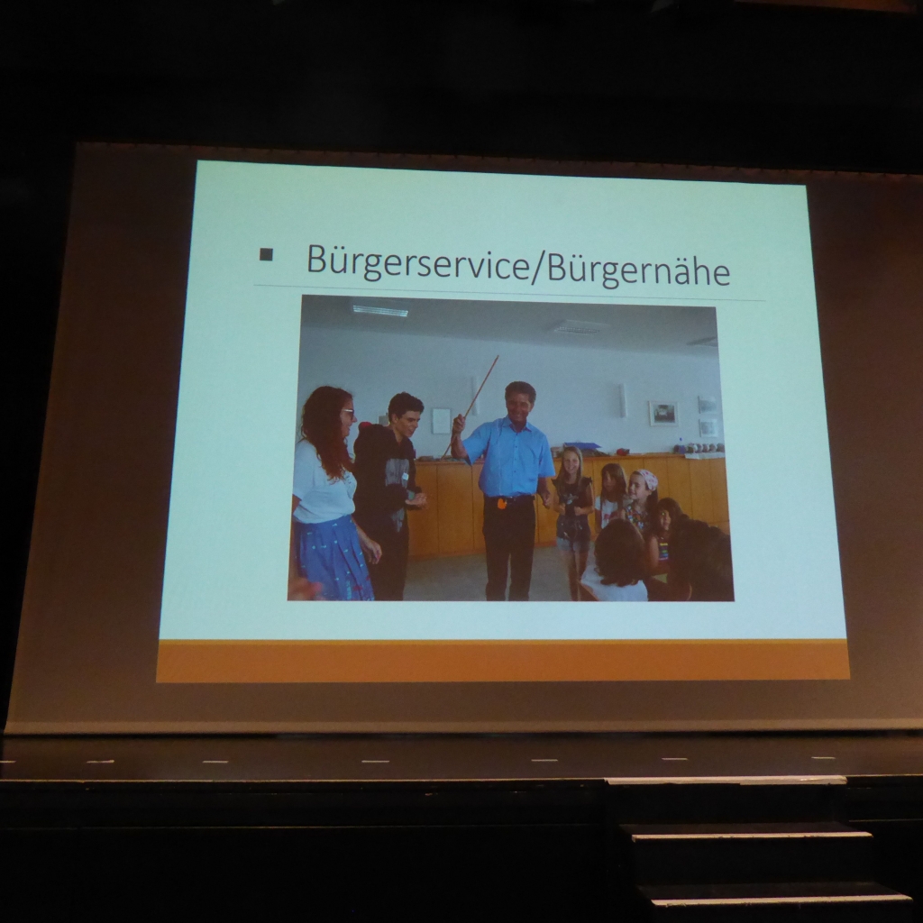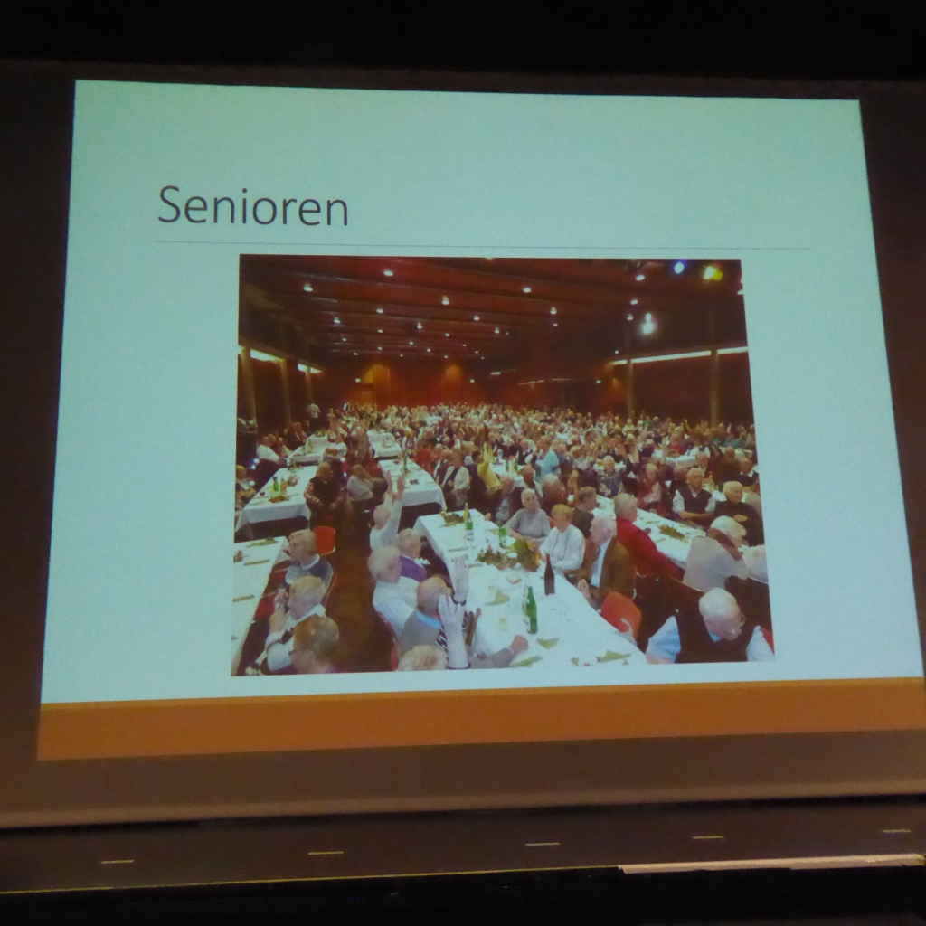 OB Heininger hatte eine Zeitrahmen von 30 Minuten für seine Präsentation. Man merkte ihm an, dass er gerne noch mehr Erfolgsfolien gezeigt hatte und der Wahlausschuss und das Publikum hatten keine Bedenken, als OB Heininger etwas länger referierte, wie der Wahlleiter Bürgermeister Jürgen Gröger feststellte.