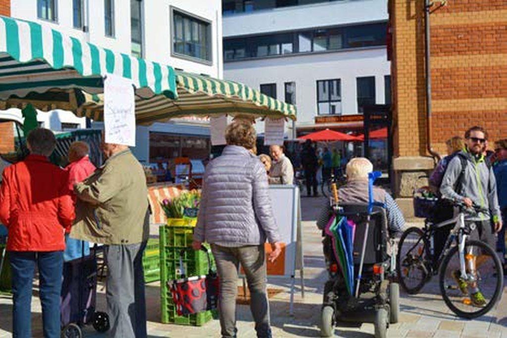 Dass alle Händler zugunsten eines noch größeren Angebots etwas enger zusammenrutschen, stört die Kunden wenig. Ein voller Schlossplatz ist inzwischen am Freitag sogar bei schlechtem Wetter die Regel. Die zentrale Lage und die Nähe zum Rathaus, zur Bücherei, zur Post und den umliegenden Geschäften wird von den Kunden gerne genutzt, um alle Besorgungen in einem Gang zu erledigen.