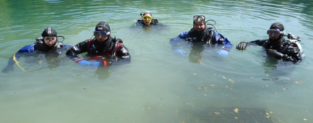 Dieses Mal trafen sich die Taucher bei herrlichem Sonnenschein an einem idyllischen See im Bayrischen, der mit klarem Wasser und einer Vielzahl von großen Stören, Forellen und Karpfen zu schönen Tauchgängen einlud.