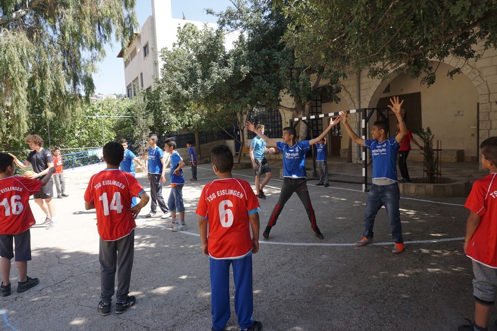 In der 90 000 Einwohnerstadt Salt bei Amman, besuchen ca. 100 gehörlose Kinder die Internatsschule „Holy Land Institut for the deaf“. Bisher spielten dort die Kinder und Jugendlichen vorwiegend Fußball. Das wird sich jetzt vielleicht ändern. Leon Held aus Eislingen absolviert zurzeit seinen Freiwilligendienst in diesem Institut und ist u.a. für die Freizeitgestaltung mitverantwortlich. Er wollte den Schüler*innen das Handballspielen beibringen, aber er hatte keinen Handball. Durch die Initiative von Simone John von der Handballabteilung des TSG-Eislingen wurde es Leons Familie ermöglicht, in den Osterferien zwei Trikotsätze und vier Handbälle nach Jordanien in die Internatsschule mitzubringen.