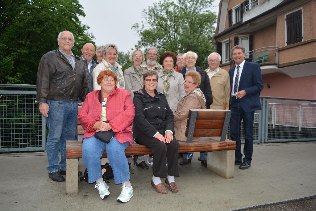 Wer sich in früheren Zeiten unbedachten Schrittes über die Brücke in der Bahnhofstraße wagte, lief schon mal Gefahr von der Jugend auf der anderen Fils-Seite –wahlweise Nord oder Süd- den „Ranza“ voll zu bekommen. Heute stehen die Erzrivalen von damals einträchtig beieinander und begutachten ihre Bank, die sie gemeinsam als Ortsverband des VdK gestiftet haben.