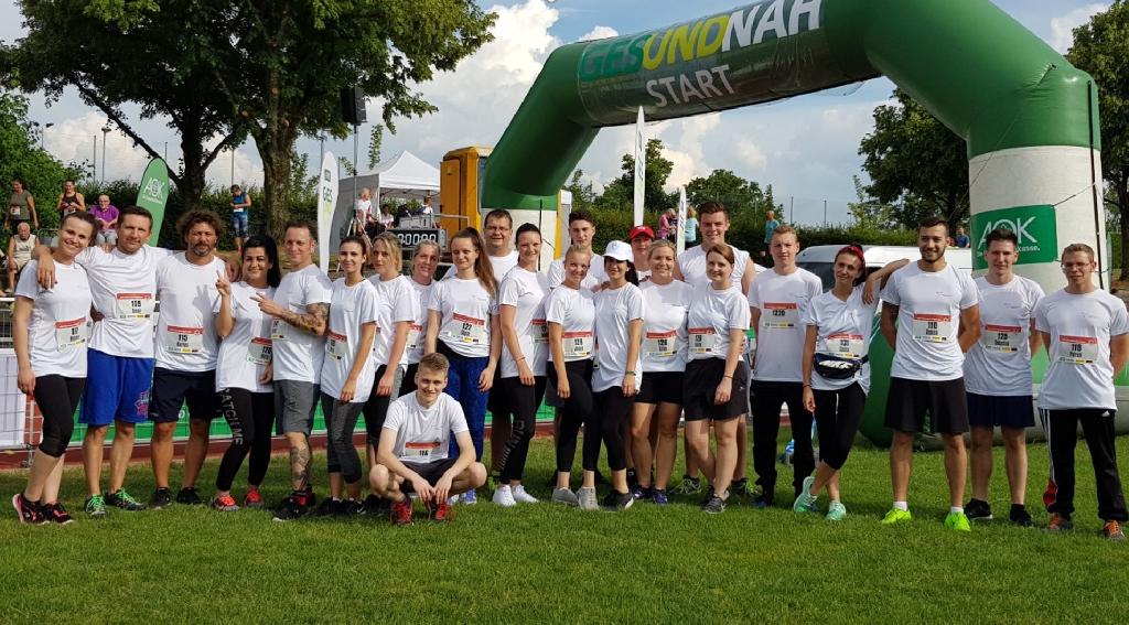 Beim 4. AOK – Firmenlauf in Göppingen waren 23 Mitarbeiterinnen und Mitarbeiter des Altenzentrums St. Elisabeth am Start. Nach einer guten Vorbereitung beim wöchentlichen Betriebssport, versammelten sich die Läuferinnen und Läufer am 04.07.18 im Heinrich-Zeller-Stadion in Göppingen, um auf die 5 km-Runde zu gehen. Alle waren einheitlich mit einem weißen Laufshirt mit dem Logo des Altenzentrums St. Elisabeth gekleidet, so dass die Läufer von weitem zu erkennen waren.Nach einem gemeinsamen Aufwärmprogramm ging es an die Startlinie und nach dem Herunterzählen des Countdowns starteten die Läufer des Altenzentrums St. Elisabeth mit anderen 1.000 Teilnehmern das Rennen. Die Strecke verlief vom Stadion aus durch das Oberholz von Göppingen auf angenehmen Schotter- und Waldwegen. Viele Kolleginnen und Kollegen waren gekommen um die Läufer des Altenzentrums St. Elisabeth anzufeuern. Es bildeten sich Gruppen, die etwa mit dem gemeinsamen Tempo unterwegs waren, so dass man sich gegenseitig aufbauen konnte.Fabian Maunz als schnellester Läufer war nach 23:45 min. im Ziel, dicht gefolgt von Sebastian Scheider. Alle anderen erreichten das Ziel glücklich über die erbrachte Leistung. Im Ziel angekommen wurde jedem Läufer eine Finisher-Medaille umgehängt. Stärken konnte man sich mit Getränken, Obst und Gemüse. Beim wöchentlichen Lauftreff halten sich die Mitarbeiterinnen und Mitarbeiter weiterhin fit, so dass ein Start im nächsten Jahr beim Firmenlauf gewiss ist. |