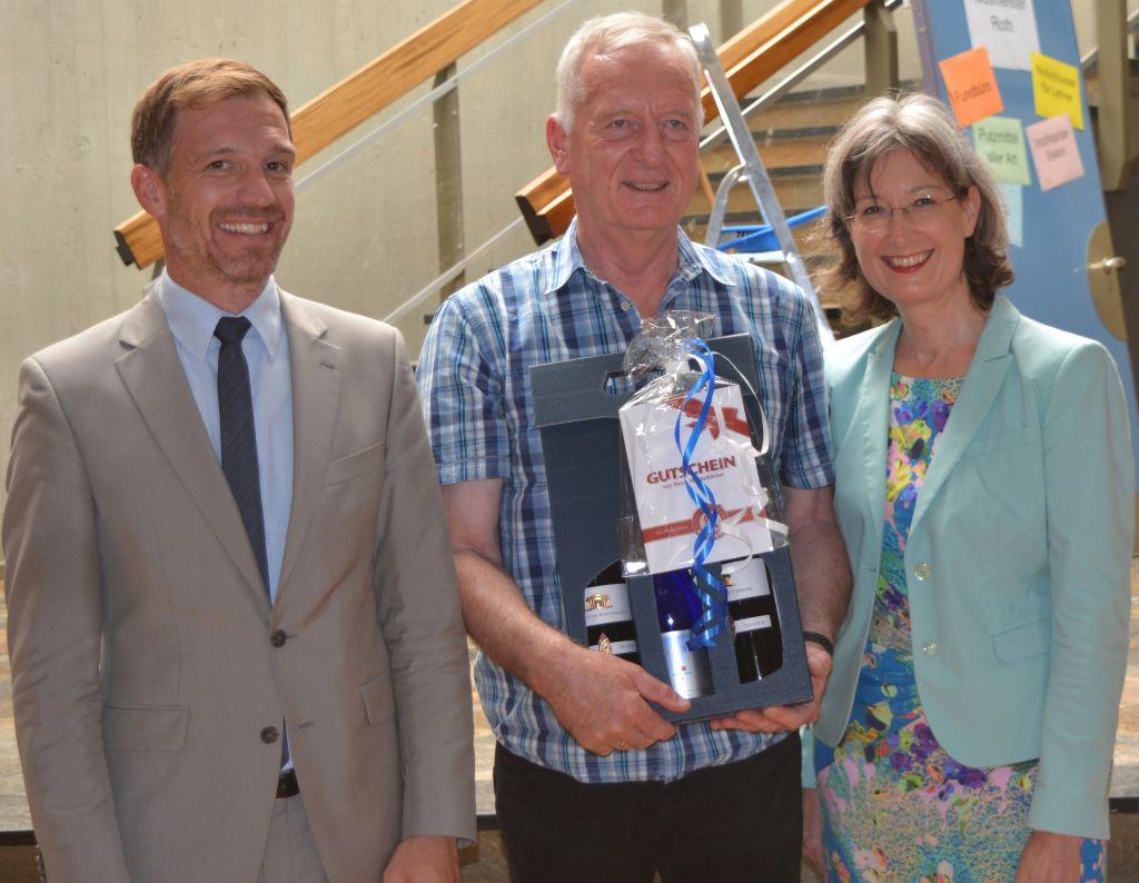 Im Bild v.l.n.r.: Andreas Schlaiss (Schulleiter DERS), Georg Roth und Marie-Luise Schäfer (Leiterin Bildungs-, Kultur- und Sportamt)
