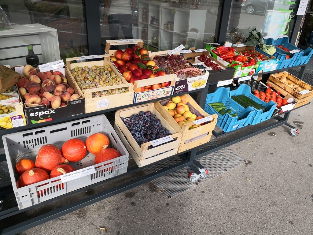 Das hat er mit heutigem Stand sehr gut umgesetzt. Vor der Schaufensterfront lädt frisches Obst und Gemüse, zum grössten Teil von regionalen Erzeugern, zum kaufen ein. Die Auslagen mussten zwischenzeitlich nochmal neu angeschafft werden, da die einstöckigen Präsentationsgestelle schnell zu klein wurden. Jetzt wird die Ware in doppelstöckigen, verschiebbaren Metallgestellen präsentiert. Beim Betreten des Ladens fällt jetzt sofort die regionle Ecke auf, die neu dazugekommen ist. Eier vom Eierhof Hackner teilen sich jetzt das Regal mit den original Lauterachern Alb-Leisa. Die hiesig angebaute Linse erfreut sich grösster Beliebtheit. Darüber ist eine Regalreihe gut bestückt mit reichlich Auswahl an Dosenwurst von der Metzgerei Schäfer aus Bissingen. Auch saure Nieren, Kutteln und Fleischbrühe in Dosen zum Aufkochen sind von diesem Metzger mit dabei. Im Kühlregal finden sich neben den Köstlichkeiten aus der ganzen Welt nun auch Fildersauerkraut in kleinen Eimerchen vom Gemüsehof Schumacher aus Köngen, sowie frisch gepresster Apfelsaft und neuer, süßer Wein aus Esslingen. Man merkt das die Wünsche der Kunden auch Richtung regionalen Erzeugnissen tendiert und Der Inhaber darauf eingeht. Preislich braucht er die Konkurrenz nicht zu fürchten. Alle angebotenen Waren sind vergleichbar mit den Eislingern Discountern zu vergleichen. Manche Produkte sogar günstiger. So kann sich auch, die auf Nähe angewiesene, Innenstadtnachbarschaft den täglichen Einkauf leisten.