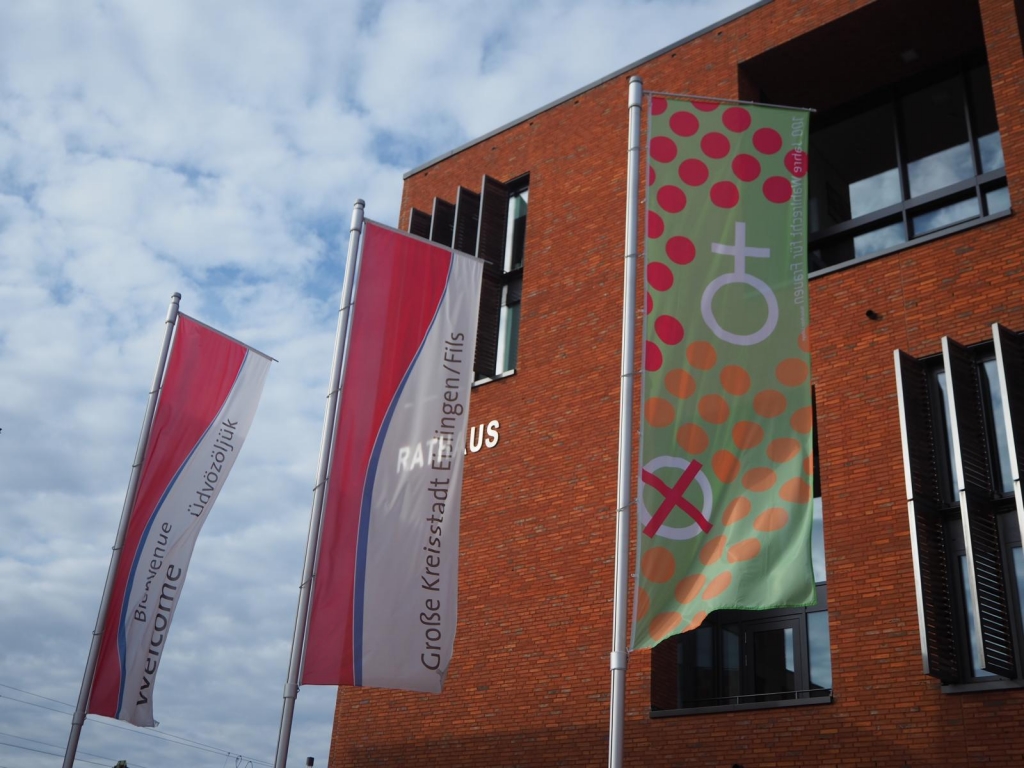 In Eislingen wehte vom 9.-12.November 2018 vor dem Rathaus in Eislingen eine besondere Fahne, die auf eine revolutionäre Neuerung hinweist, die vor 100 Jahren stattfand.