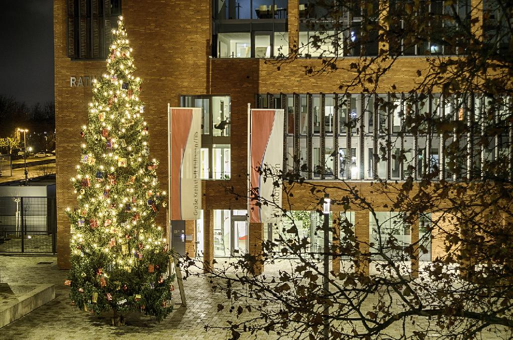 Seit Mittwoch leuchtet er wieder, der Weihnachtsbaum vor dem Rathaus.