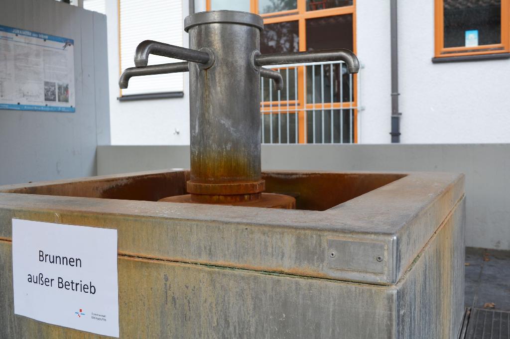 Der Betrieb des Sauerbrunnens in Eislingen Süd ist seit längerem eingestellt, weil bei einer Routinekontrolle coliforme Bakterien nachgewiesen wurden. Ursache der Verkeimung sind veraltete Zuleitungsrohre, die jetzt ausgetauscht werden.