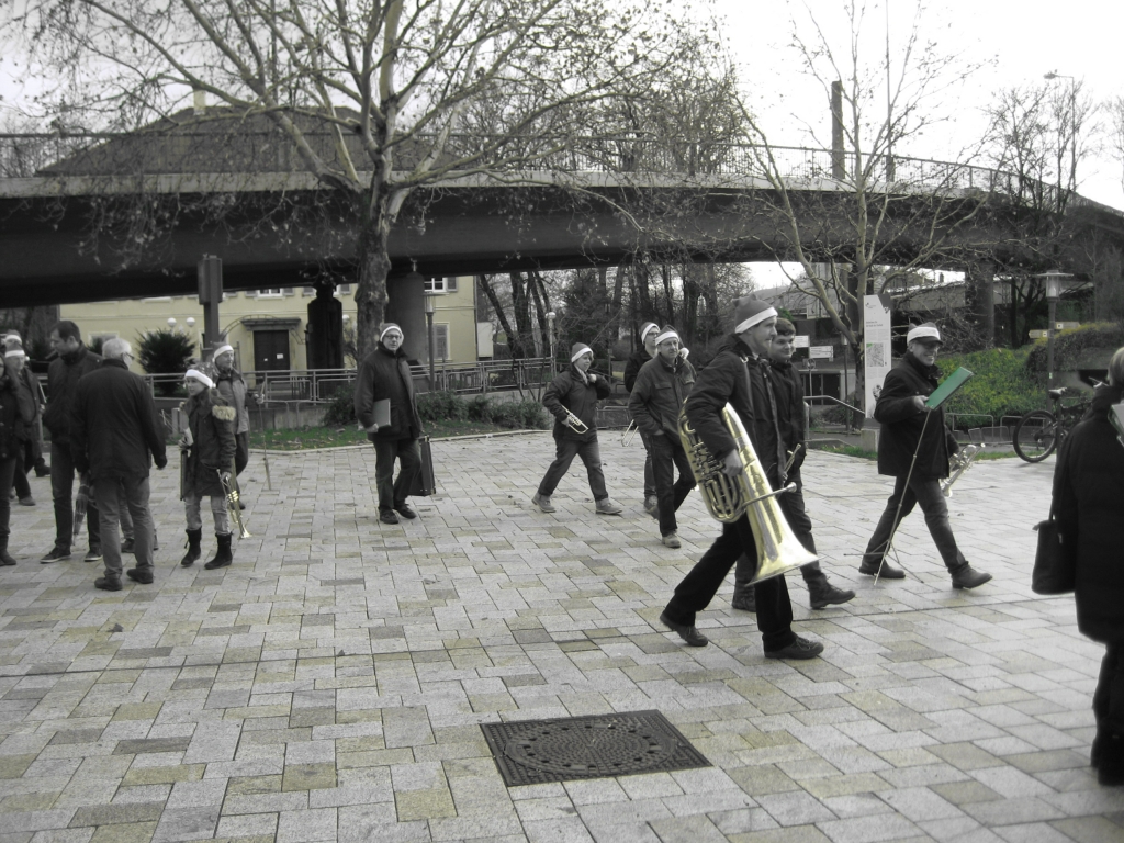 Auf den Heiligen Abend musikalisch eingestimmt Stadtkapelle und Posaunenchor musizierten gemeinsam am Rathaus 26.12.2018 - Hans-Ulrich Weidmann/Fotos: Jo Römer