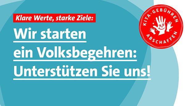 Die SPD in Baden-Württemberg startete ein Volksbegehren zur Abschaffung der Kita-Gebühren in Baden-Württemberg. Zur Zulassung des Antrages werden bis zum 31. Januar landesweit mindestens 10000 Unterschriften benötigt. |