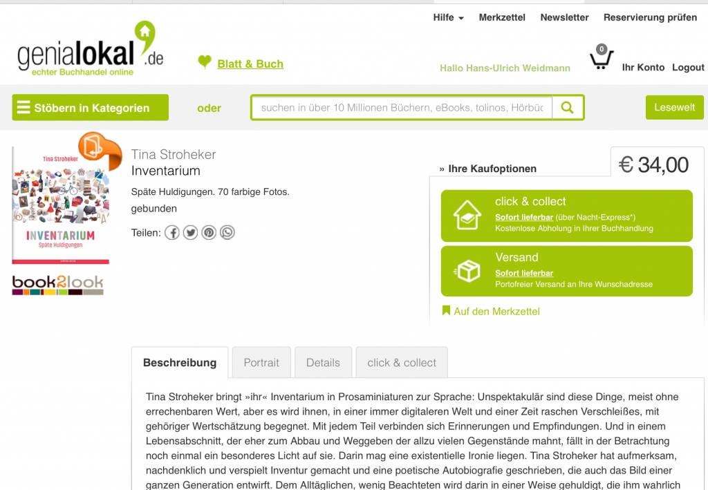 Blatt & Buch, der Eislinger Schreibwaren- und Buchhandel, geht neue Wege im Internet. Mit dem Bücher-Online-Shop „ genialokal“ kann man/frau bequem am PC, Tablet oder Smartphone aus über 10 Millionen Buchtitel auswählen und bestellen. Die bestellten Bücher/CD’s/Spiele/NonBooks sind dann meist am nächsten Werktag im Ladengeschäft bei Frau Schott in der Bahnhofstr. 5/1 abholbereit und werden vor Ort bezahlt. Alternativ wird die Bestellung auch an eine gewünschte Adresse verschickt. t. |