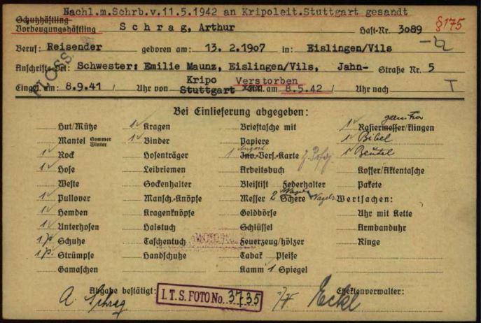 Die Göppinger Stolperstein-Initiative stieß bei ihren Recherchen auch auf den am 13. Februar 1907 in Eislingen geborenen Arthur Schrag, der am 8. Mai 1942 im KZ Flossenbürg zu Tode kam. Seine Weise zu lieben war nach § 175 StGB ein Verbrechen und führte den schwulen jungen Handelsvertreter über das Gefängnis ins Konzentrationslager und zu einem frühen Tod.