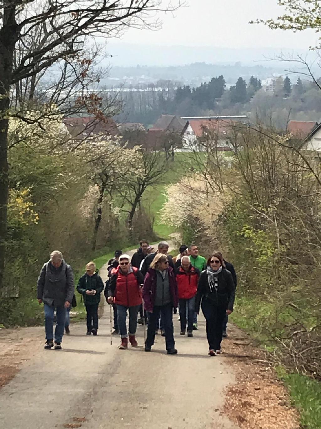 So manch einer wird sich am Sonntag Nachmittag gewundert haben, als er in Krummwälden an der Bushaltestelle vorbeifuhr. Dort stand eine große Menschentraube von OGV-Mitglieder und Freunde zum Abmarsch bereit. Bei bestem Frühlingswetter führte die Wanderung vorbei an blühenden Obstanlagen. Mit einem herrlichen Panoramablick vom Etzberg war der Spaziergang ideal für Familien mit Kindern und Senioren. An Kitzen vorbei durch Ottenbach ging es Richtung Gasthaus Buchs. In geselliger Runde und gutbürgerlicher Küche verging der Nachmittag wie im Flug. Das Maibaumteam nutze die Gelegenheit zur Planung des 1. Mai und gemeinsam brach man auf zur Rückkehr durch Eschenbäche Richtung Krummwälden. Die Vorstandschaft bedankt sich recht herzlich für die zahlreiche Teilnahme und freut sich auf den nächsten Ausflug! |
