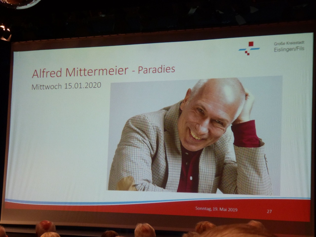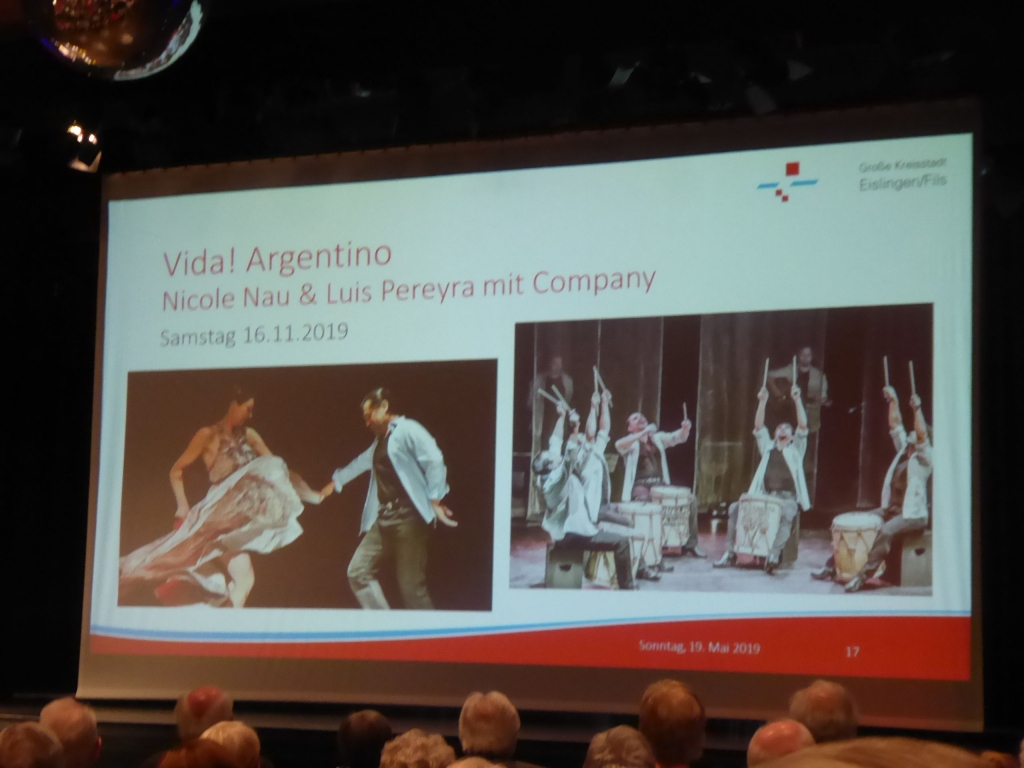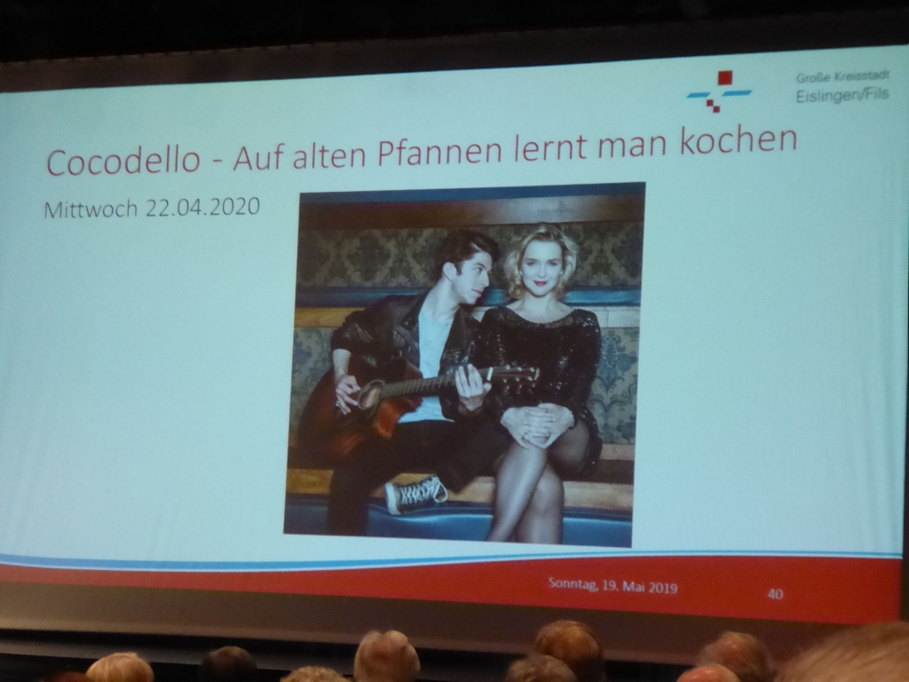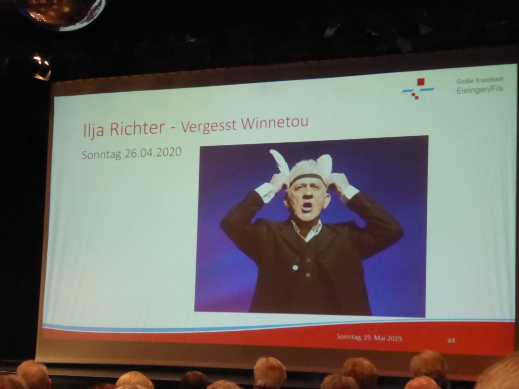Am Sonntag um 11 Uhr und der Kronensaal ist gut gefüllt. Was gibt es zu sehen? Kulturamtsleiterin Marieluise Schäfer präsentiert das Kulturprogramm für das nächste Halbjehr und das 1. Halbjahr 2020. Informationen über die Künstler und Einspielungen kurzer Sequenzen aus den künftigen Programmen kommen beim Publikum sehr gut an und wecken den Appetit auf das Programm. |
