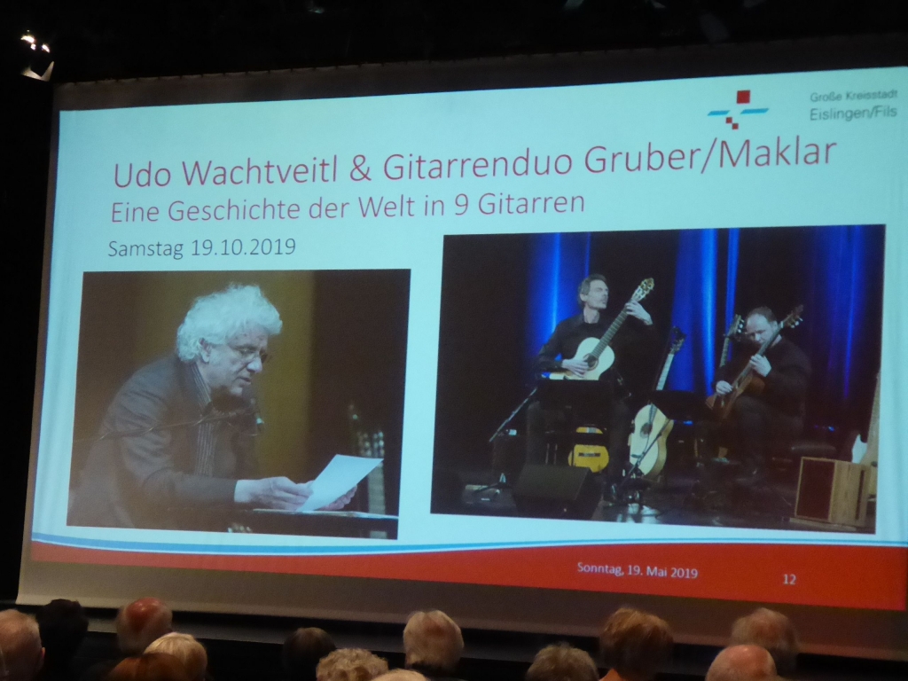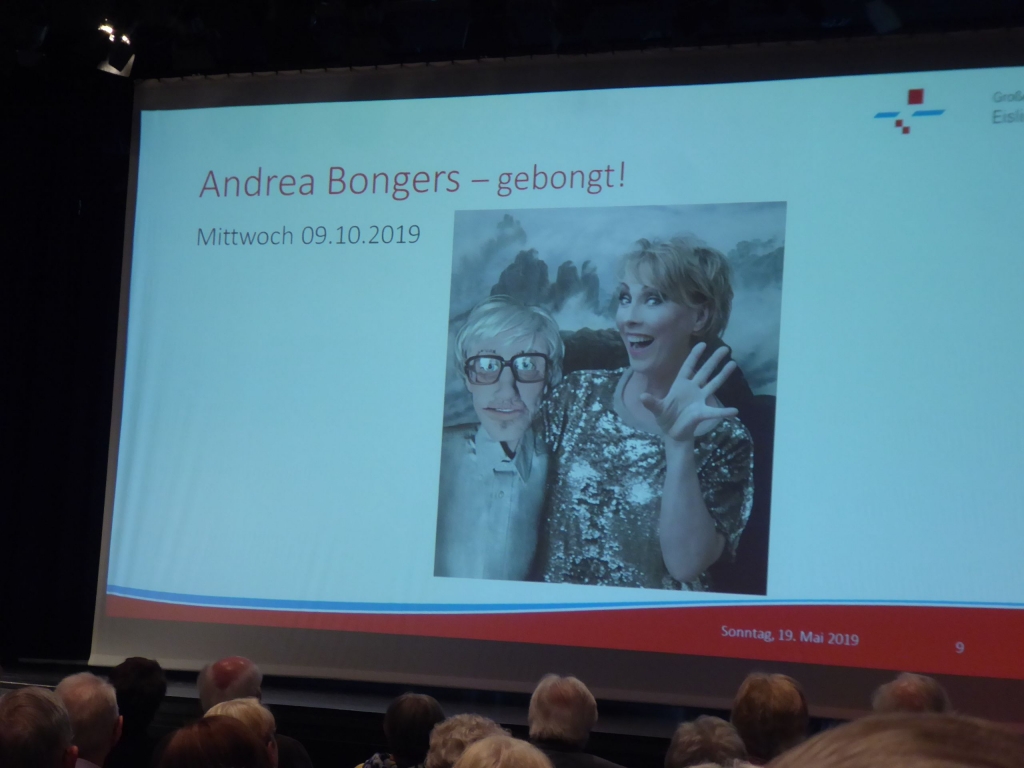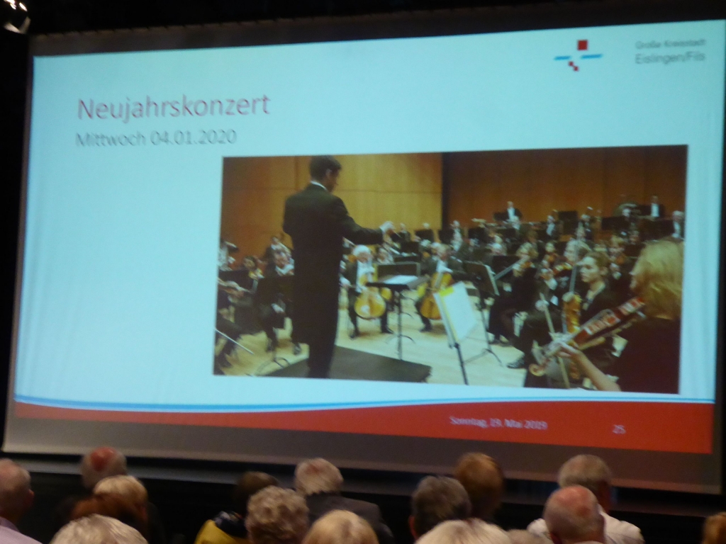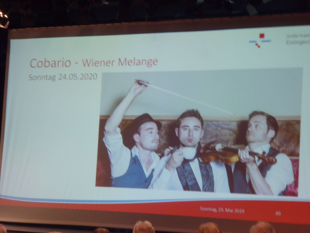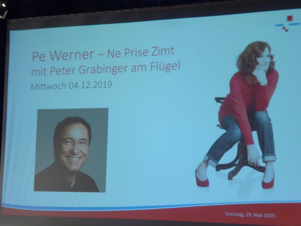 Am Sonntag um 11 Uhr und der Kronensaal ist gut gefüllt. Was gibt es zu sehen? Kulturamtsleiterin Marieluise Schäfer präsentiert das Kulturprogramm für das nächste Halbjehr und das 1. Halbjahr 2020. Informationen über die Künstler und Einspielungen kurzer Sequenzen aus den künftigen Programmen kommen beim Publikum sehr gut an und wecken den Appetit auf das Programm. |