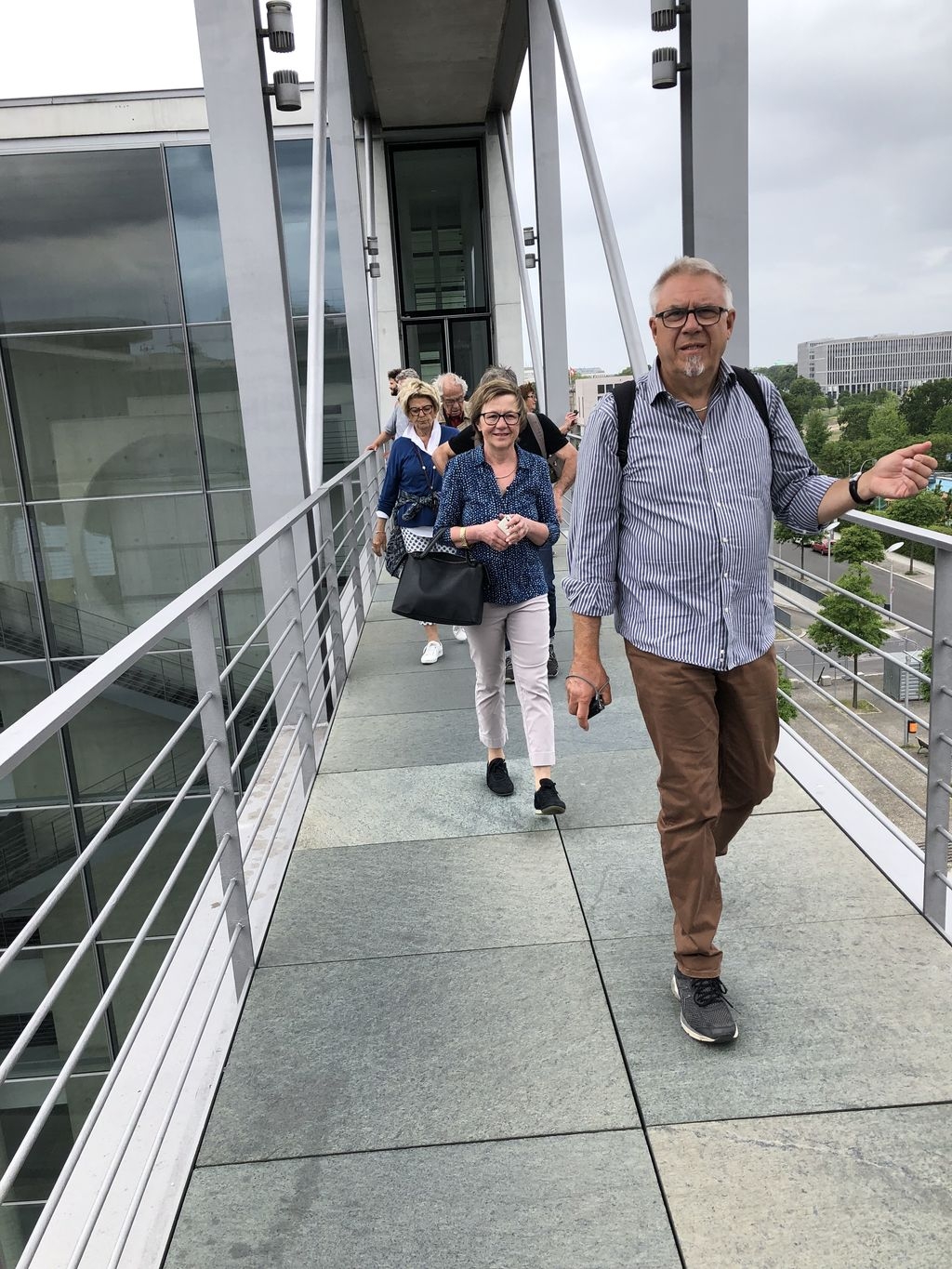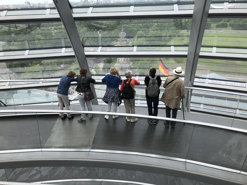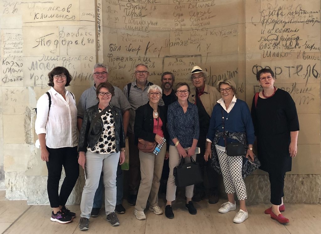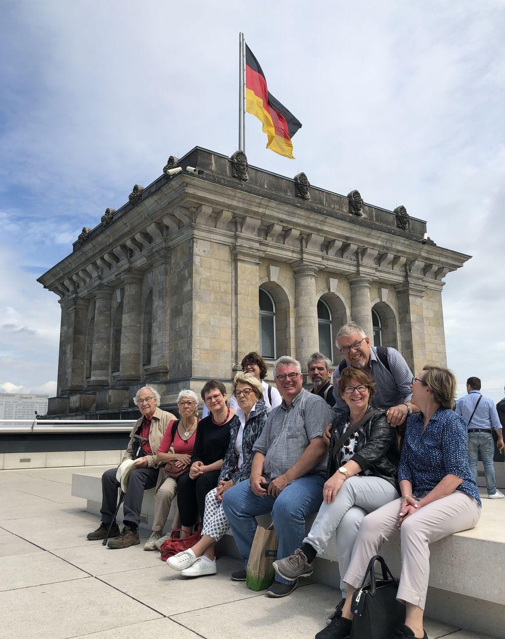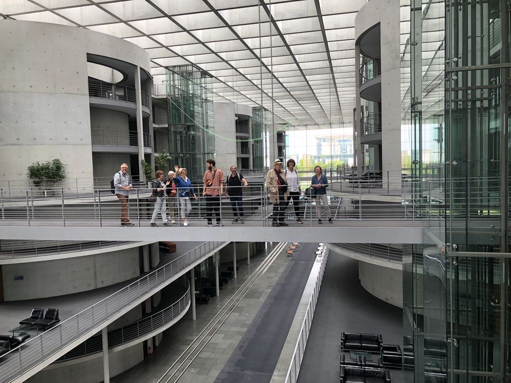 Die frisch wiedergewählten Stadtratsmitglieder Ulrike und Holger Haas und Lothar Weccard, samt seiner Frau Elke Weccard, statteten der Bundeshauptstadt zum verlängerten Vatertagswochenende einen Besuch ab. Die Idee war geboren, nachdem engagierte Bürgerinnen und Bürger der Eislinger Partnerstadt Oyonnax bedauernd feststellten, noch nie in Berlin gewesen zu sein. Kurzerhand wurde die gemeinsame Reise verabredet. Was lag näher, als die Gelegenheit zu nutzten und sich von der in Eislingen lebenden Bundestagsabgeordneten Leni Breymaier gleich den Bundestag zeigen zu lassen. Die Bürogebäude und Sitzungsräume im Paul-Löbe-Haus gehörten genau so dazu wie das Reichstagsgebäude samt Kuppel mit Blick in den Plenarsaal. Das Wetter spielte mit. Es war sonnig aber noch nicht so heiß. Wenige Tage nach der Europawahl war dieser Ausflug ein schönes Beispiel für die gelebte deutsch-französische Freundschaft. |