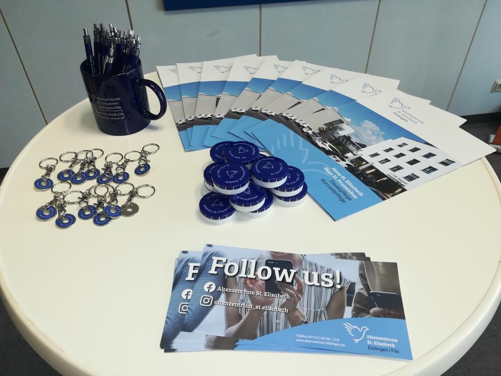 Mit einem kleinen Messestand präsentierten die Mitarbeiter den Schülerinnen und Schülern der Schillerschule das Unternehmen. Kleine Werbegeschenke wie Tassen, Bonbons und Kugelschreiber dürfen dabei nicht fehlen. Die Schülerinnen und Schüler stellten gezielte Fragen zu den Ausbildungsberufen im Altenzentrum St. Elisabeth und bekundeten ihr Interesse an einer Ausbildung sowie vorab gerne ein Praktikum zu absolvieren.