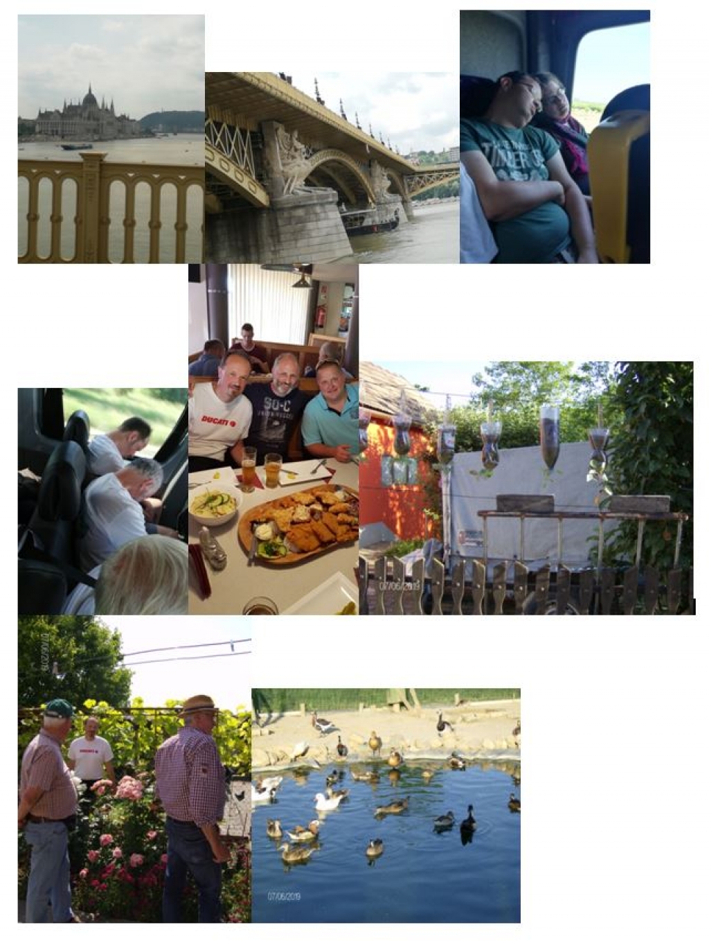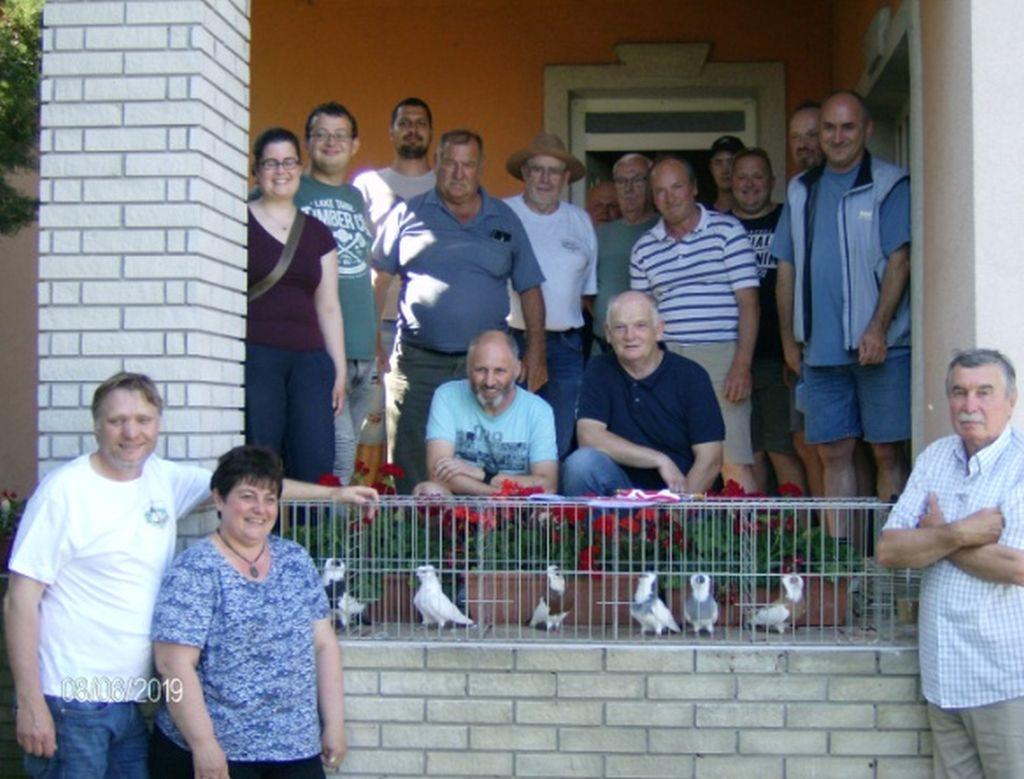 Gut gelaunt machten sich am Freitagmorgen, den 07.06.2019 gegen 1:30 Uhr bei kühlen 8°C acht Stauferländer mit einer klitzekleinen Verspätung auf den Weg nach Villany / Ungarn. Beim ersten Tankstopp kurz vor Wien gegen 7.00 Uhr wurde eine etwas längere Pause eingelegt zum Frühstück. Danach ging es frisch gestärkt weiter. In Budapest holten wir dann am MetroBusbahnhof unseren Dolmetscher Janos ab. In Budapest herrschten mittlerweile Temperaturen um die 27°C. Die Temperatur sollte in den nächsten Tagen noch steigen, bis auf 32°C. Nach der Begrüßung und einer kurzen Pause ging es an der Donau entlang wieder aus Budapest hinaus auf dem direkten Weg nach Bonyhad zu unserem Mitglied Tibor Szanto. Bei ihm wurden wir so gegen 16.00 Uhr erwartet, aber wir waren etwas früher dran. Istvan Eibel kam mit vier anderen Zuchtkollegen zur Begrüßung. Die mitgebrachten Tiere wurden erst mal mit Schatten und vor allem Wasser versorgt, und wir machten uns auf zu einem kurzen Fußmarsch um die ersten Kingtauben anzuschauen. Dann ging es zurück zu Tibor ins Ti-To. Dort erwartete uns ein leckeres Essen - Schnitzelplatte mit Reis, Kartoffelsalat und frittierten Kartoffelecken. Nach dem Essen fuhren wir noch in das Dorf Ofalu, wo wir auf Deutsch begrüßt wurden und wo Paprika und Rosenkohl kopfüber in Flaschen wächst. In Ofalu gab es Zierenten, Fasane und Damwild zu sehen. In einem zweiten Grundstück waren noch verschiedene Sittiche u.a. Halsbandsittiche in vielen verschiedenen Farben, untergebracht und jede Menge Bienen. Bestimmt an die 200 Bienenkästen. Unser Imker Josef Kolb konnte sogar wieder eine Bienenkönigin mitnehmen. Den Abend ließen wir gemütlich auf der Terrasse unserer Unterkunft ausklingen.